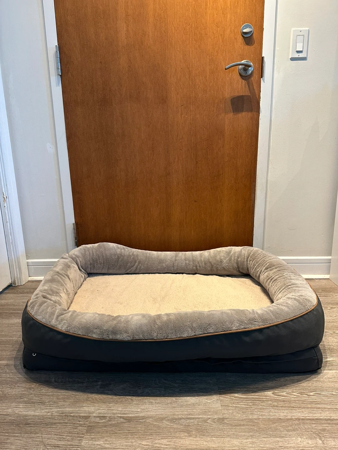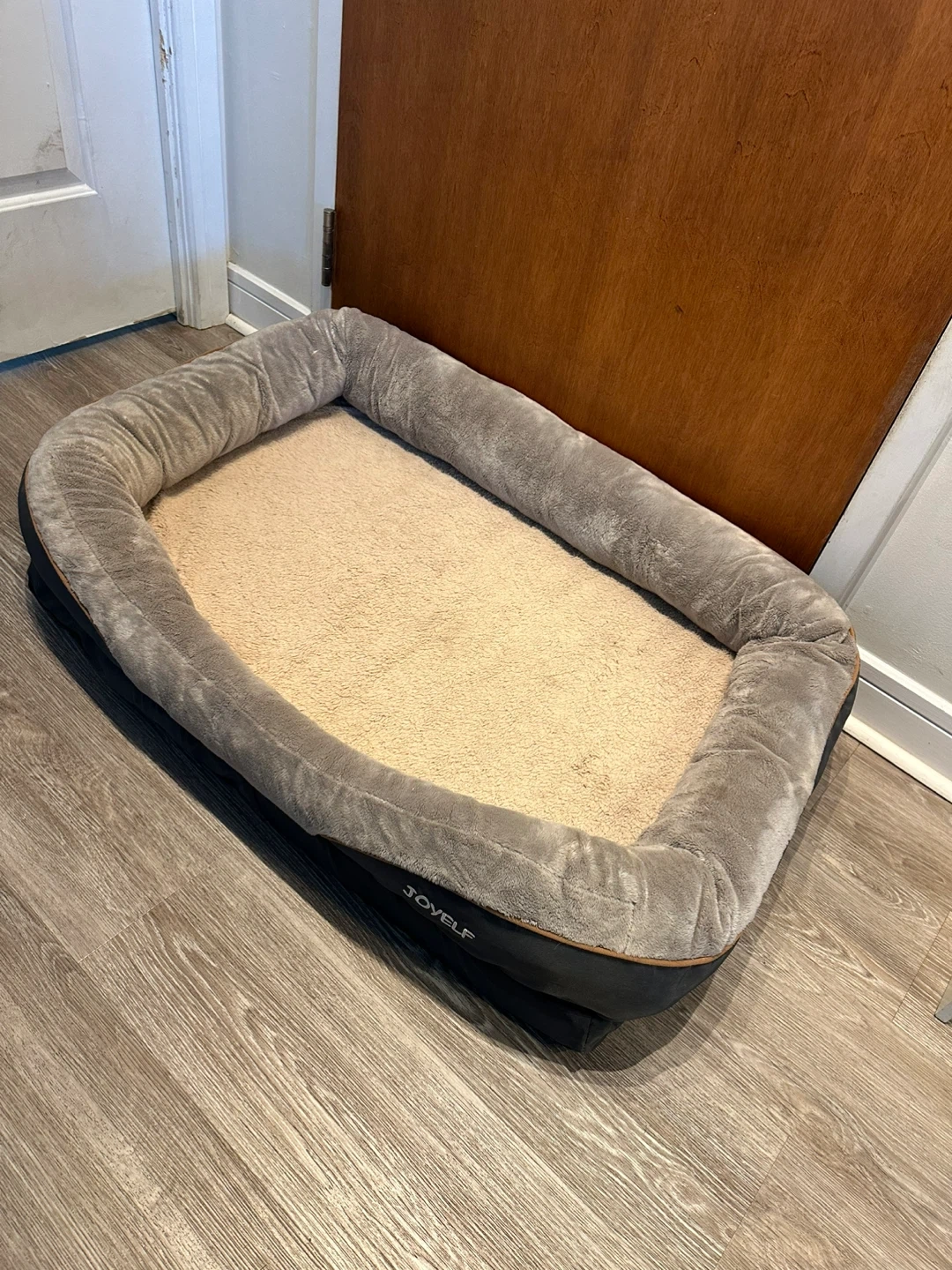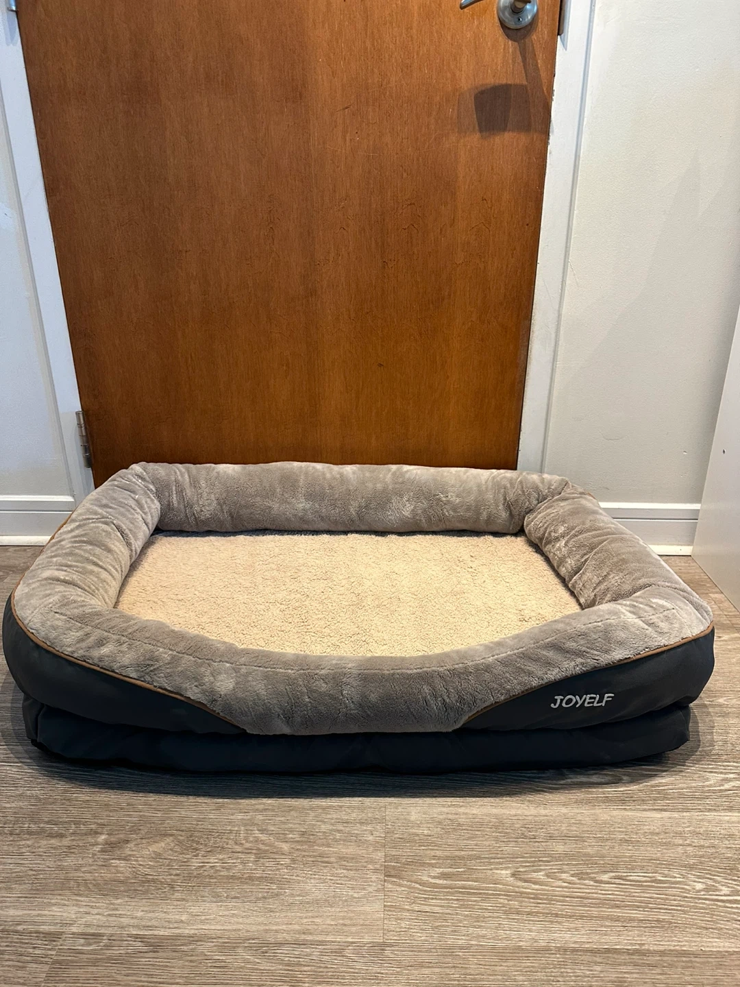 Large dog bed with memory foam XL Orthopedic memory foam base and plush surface for maximum comfort. The bed also has a non-slip bottom to keep it in place. Very easy to wash and clean. Dimensions: 40” x 30” x 9”