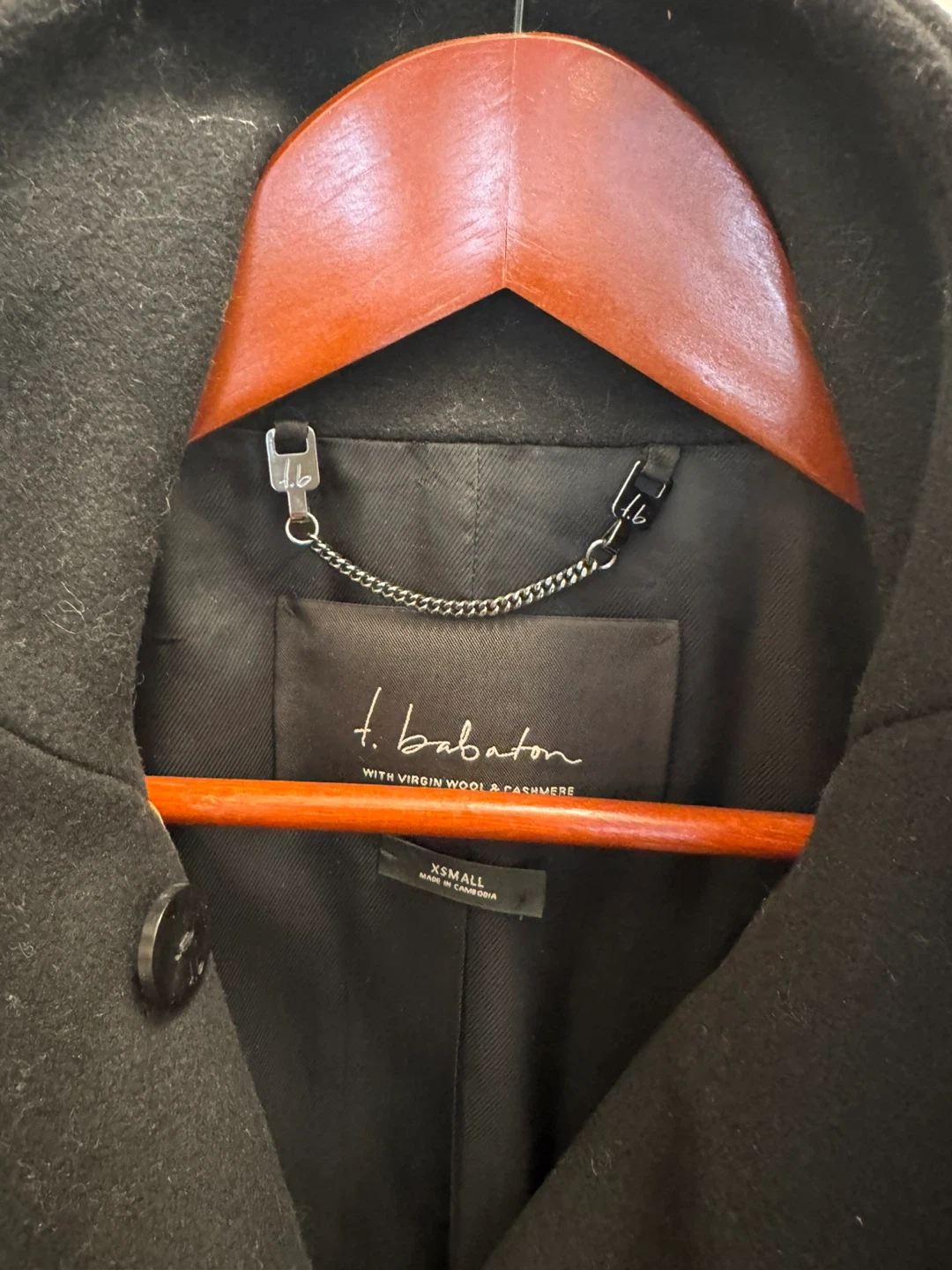 Aritzia Babaton Black Double-Breasted Wool Cashmere Coat (Long)