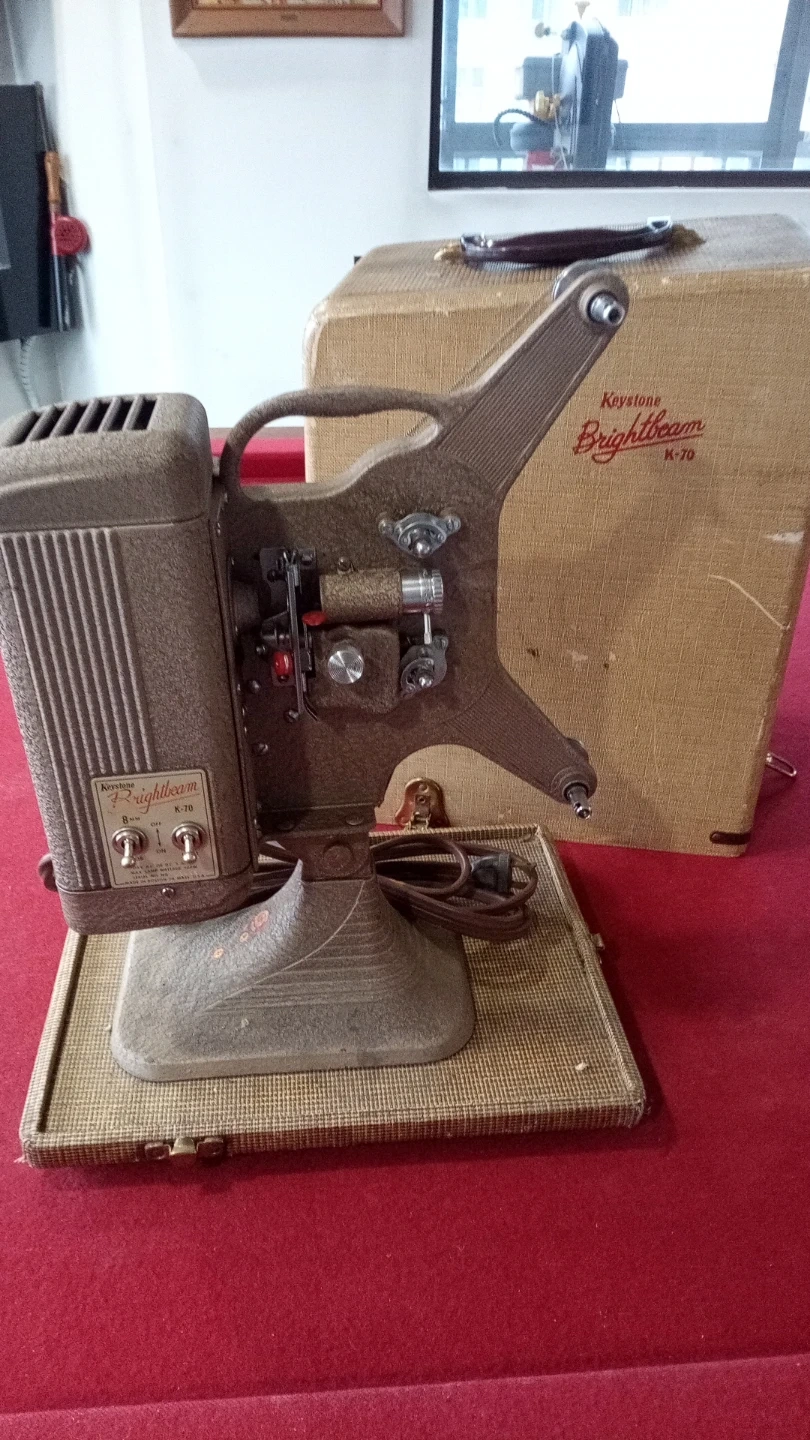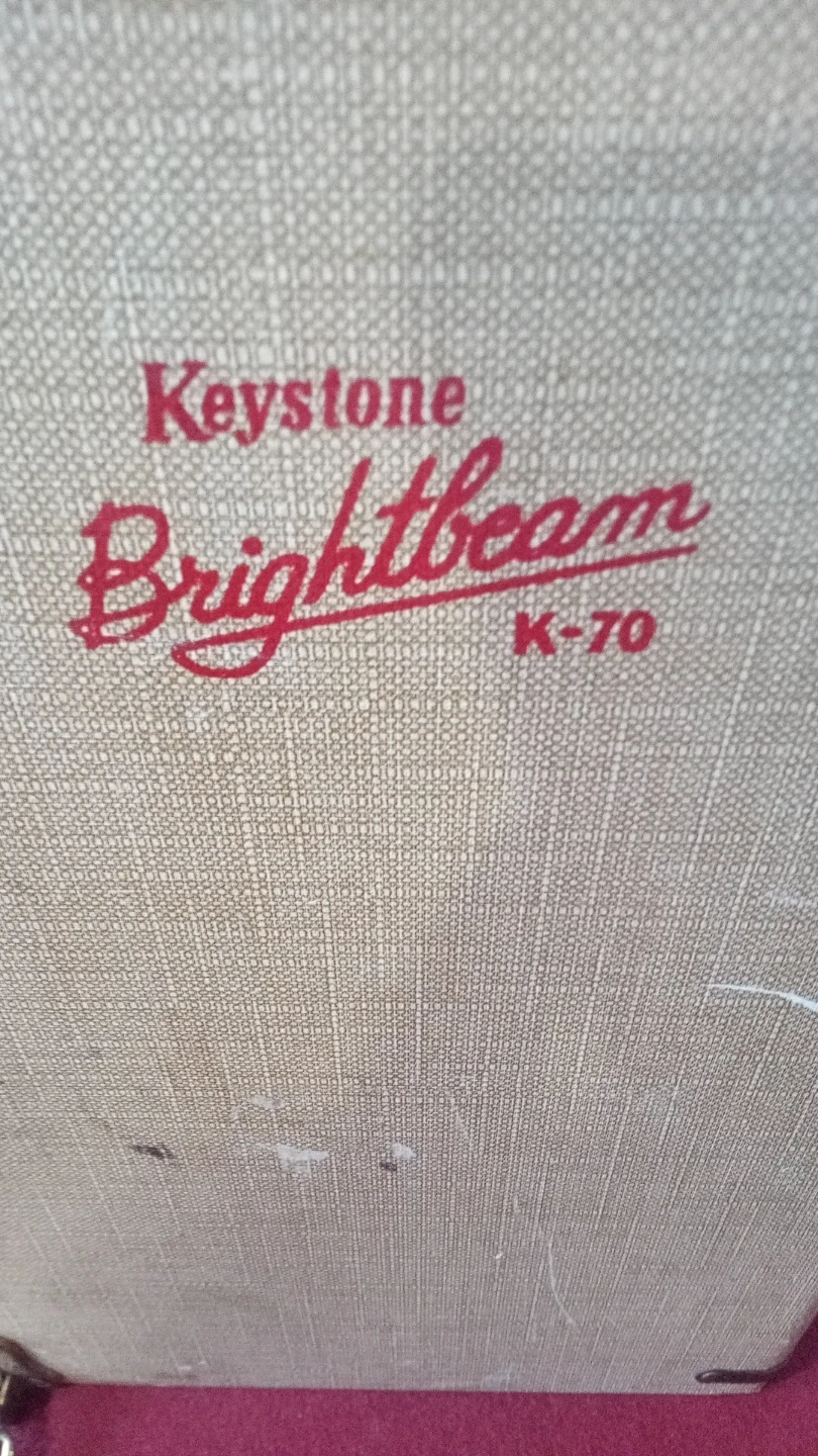 This is a vintage Keystone Brightbeam K-70 8mm film projector. It's made in the U.S.A. and includes its original case. Comes with power cord attached. The unit has switches for motor and light.