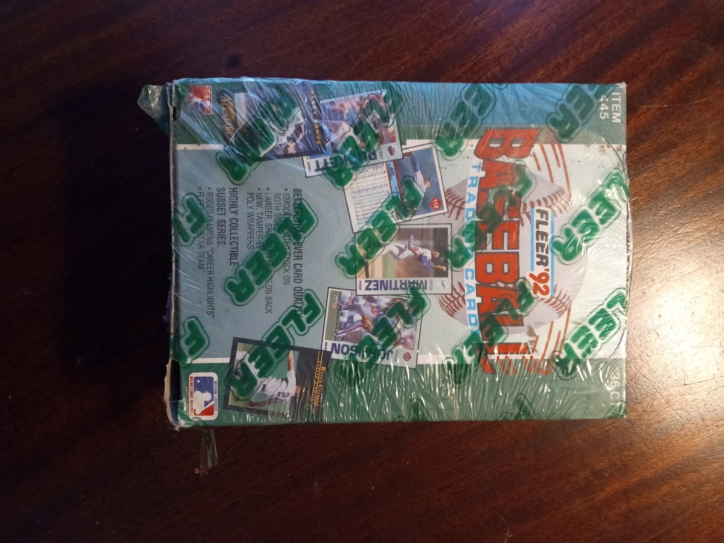 This is a sealed box of Fleer '92 baseball cards. It features a subset series with Roger Clemens 'Career Highlights' and a 'Star Team'. Includes new, tamper-evident poly wrappers with smoother dated stock.