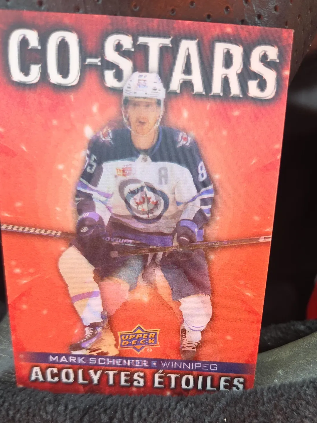 This is an Upper Deck "CO-STARS" hockey card featuring Mark Scheifele. It shows him playing for the Winnipeg Jets. This card is a collectible item for hockey fans.