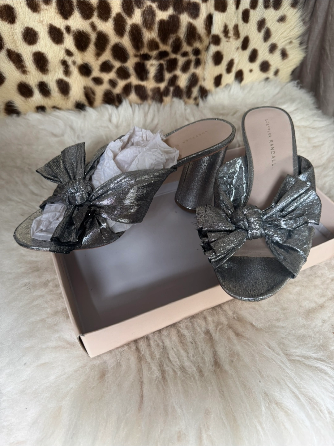 These are Loeffler Randall silver heels mules. They come with the box. Perfect for a night out!