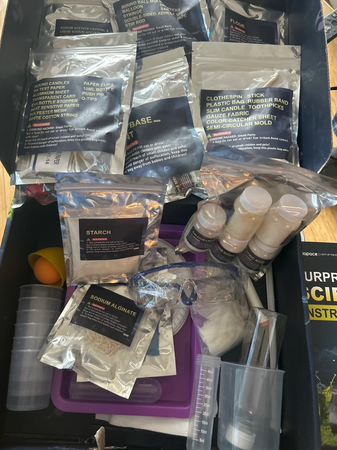 This Japace Surprising Science Kit comes with over 100 cool experiments. It's designed for ages 4 and up. A variety of experiment components are included for young scientists! Parent supervision required