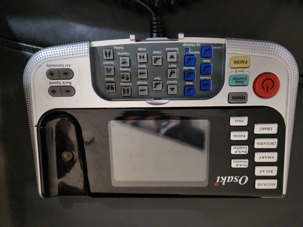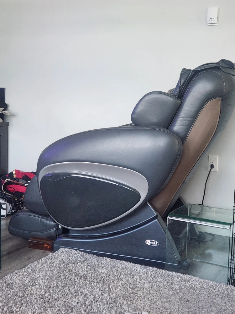 10Massage chair. Model OS4000. Includes instruction manual. Features multiple massage functions and settings. Power: 250W. Max time rate: 60 minutes.no rips or tears leather
