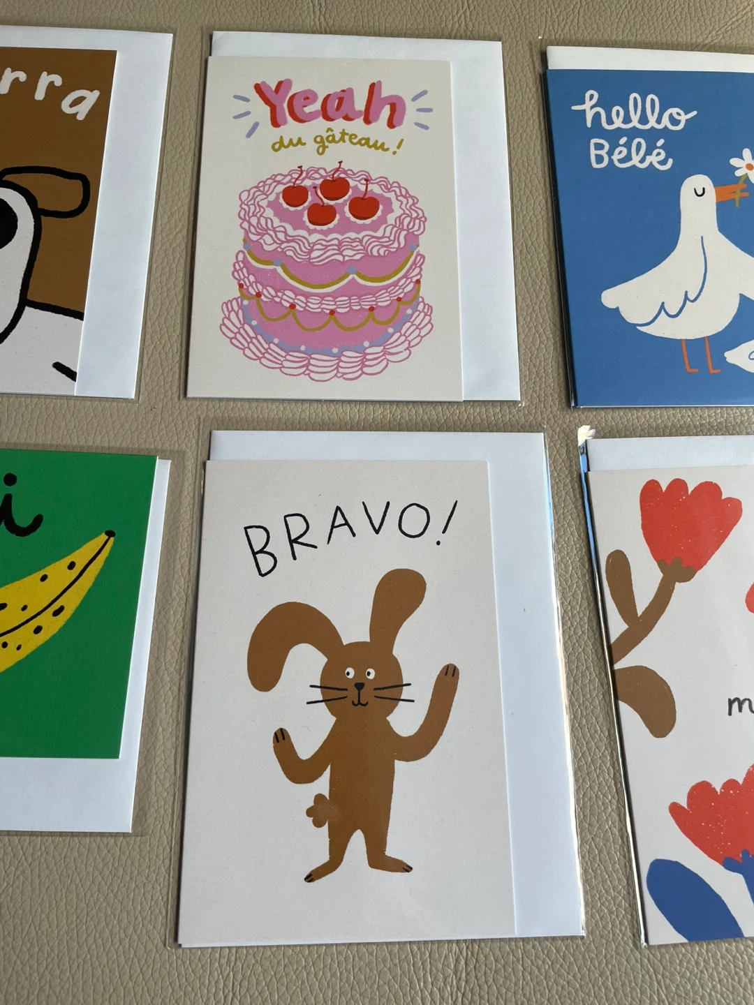 This set includes six fun and quirky French greeting cards. They're perfect for various occasions!