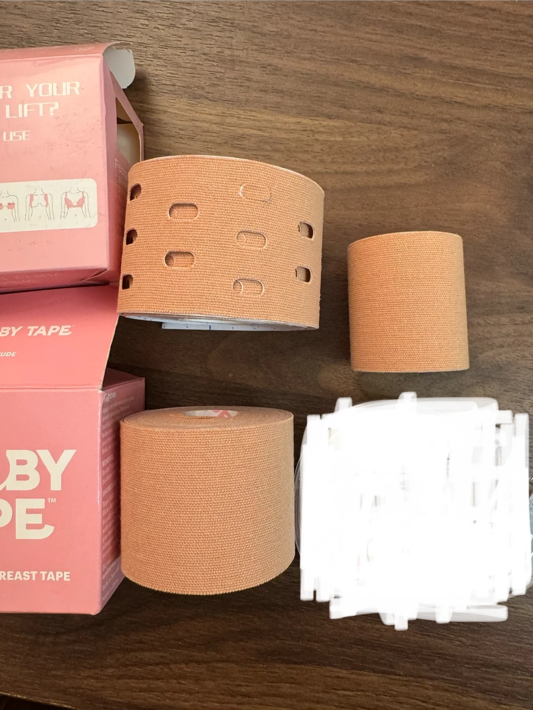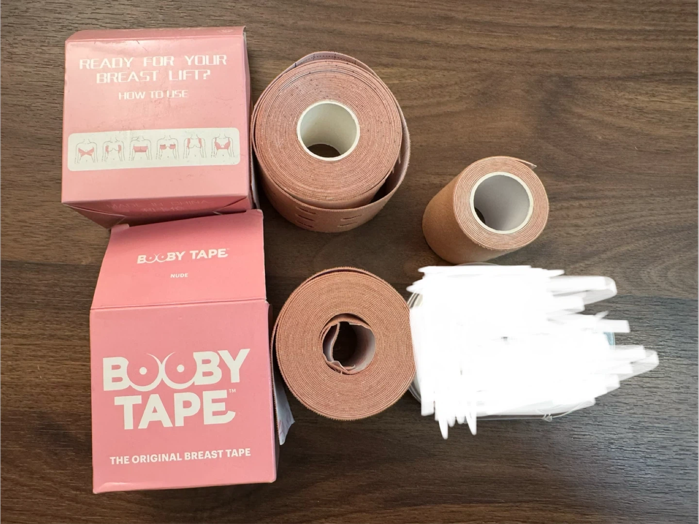 Booby Tape is the original breast tape for lift and support. It's a body and clothing tape designed for easy application at home or on the go. This tape is nude coloured.