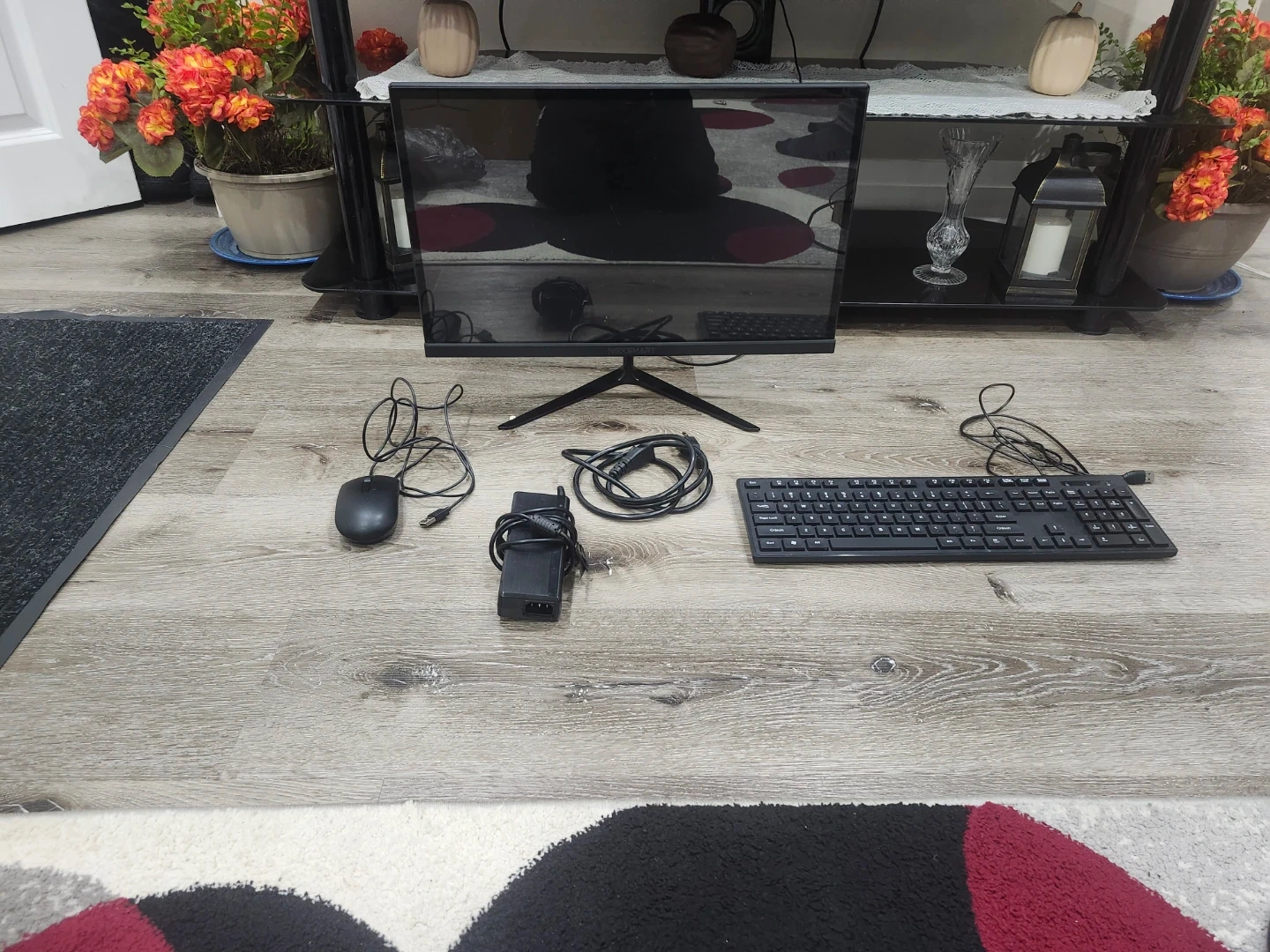 This is a NexiSmart monitor set. It includes the monitor, a keyboard, and a mouse. The monitor has USB ports on the side.