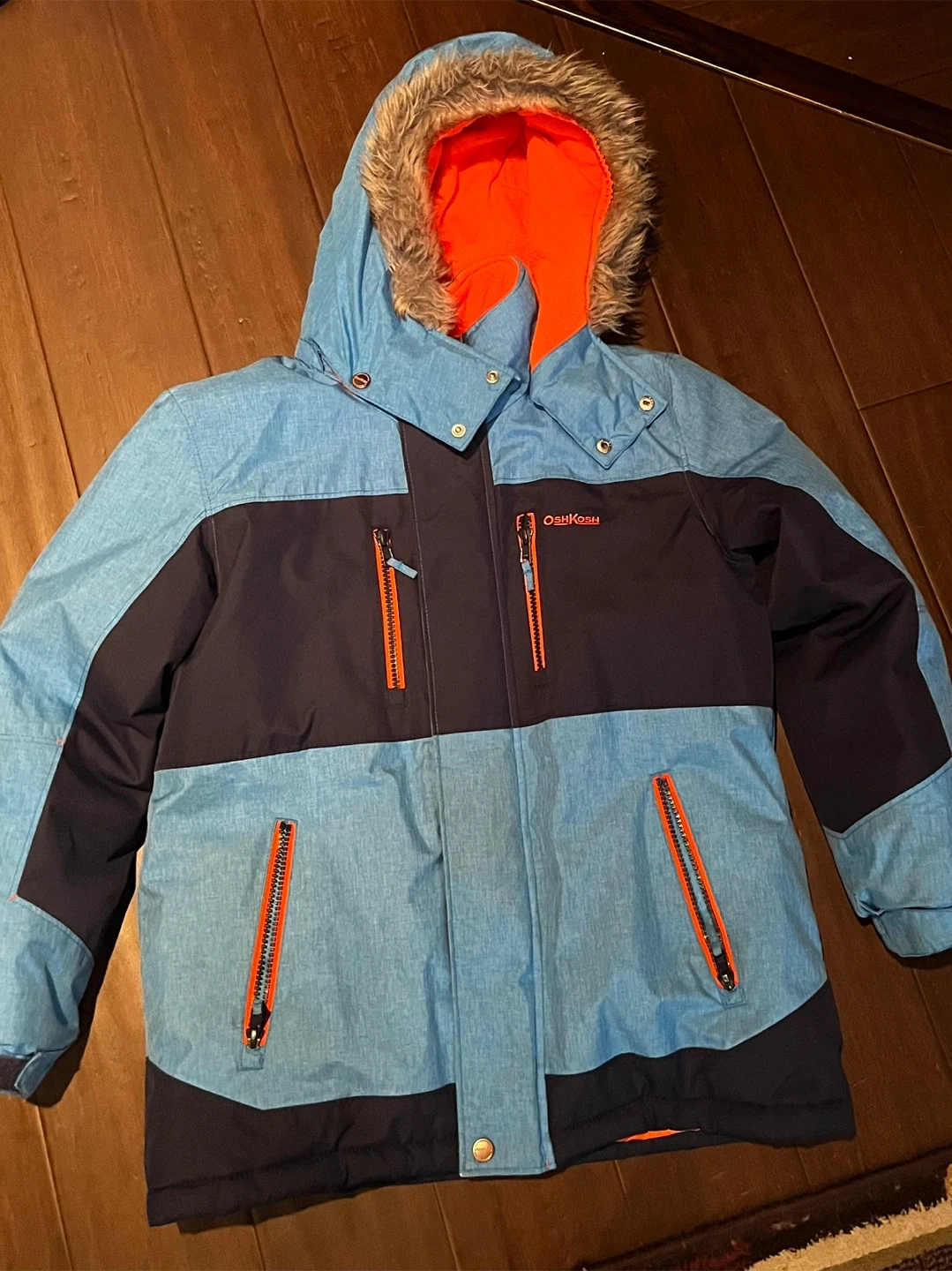 20Selling a set of OshKosh B'Gosh snow pants and a matching jacket! The jacket is blue and navy with orange accents and a faux fur hood. The pants are navy with adjustable suspenders. Both are in great condition and ready for some winter fun. Size 10