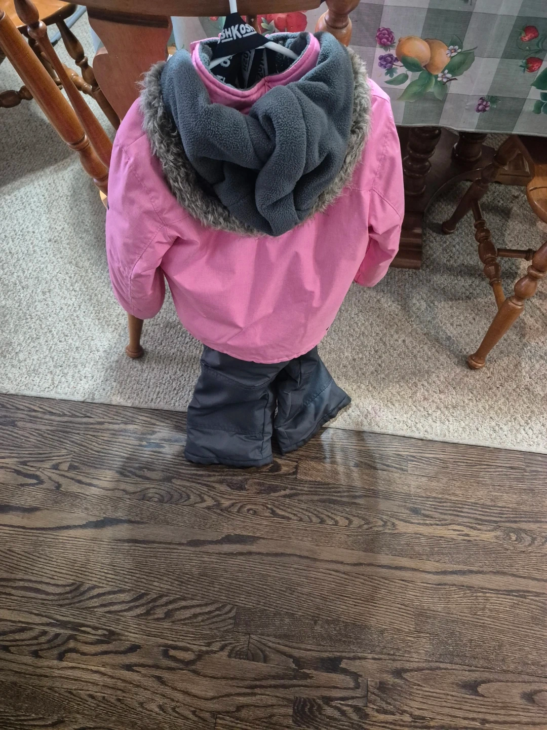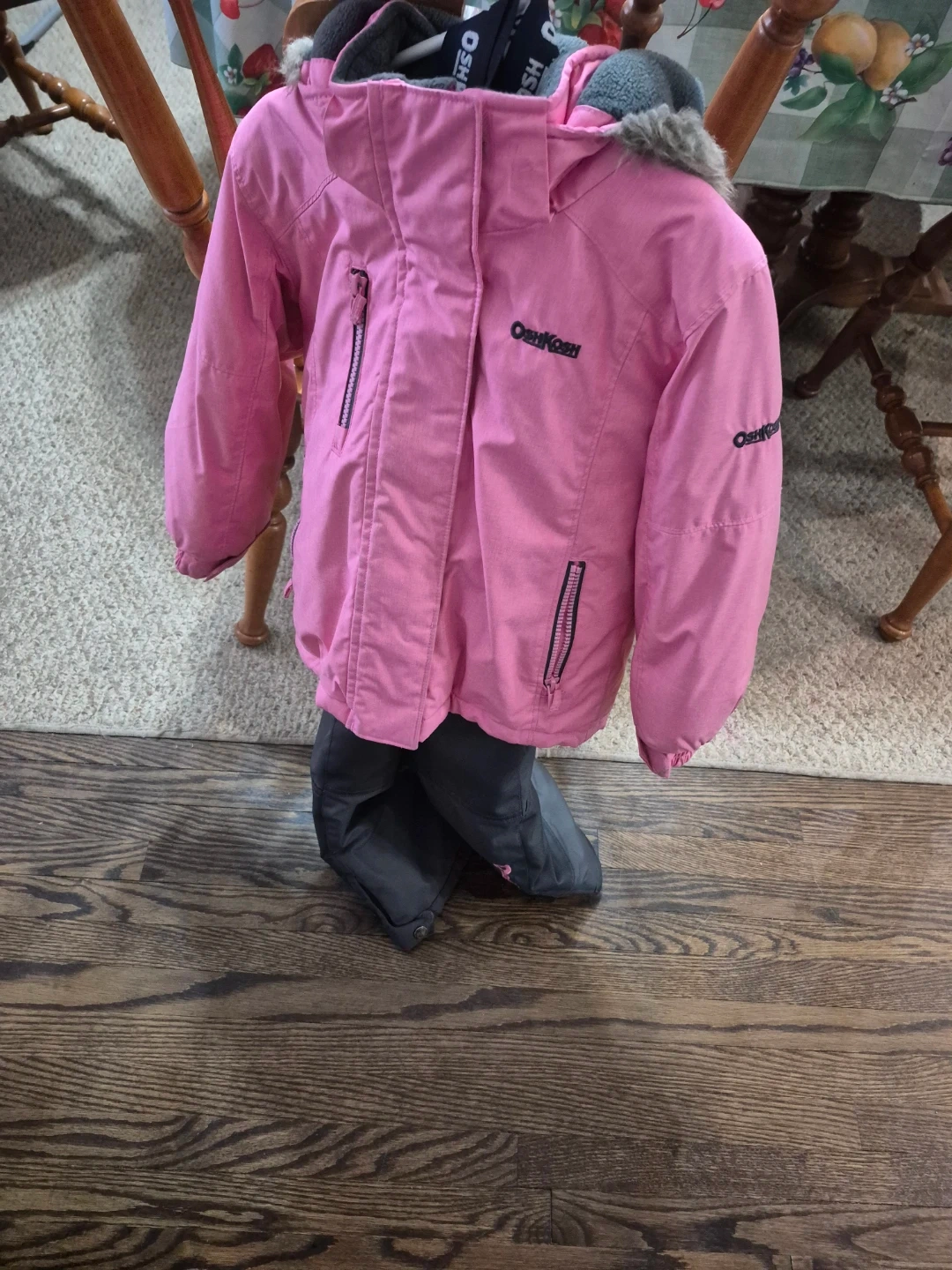 70Here's a super cute OshKosh winter set, perfect for keeping your little one warm and cozy! The set includes a pink winter jacket and grey snow pants. Both are in great condition and ready for some snowy adventures. Size 4T Pick up Mississauga Area or Brampton Area