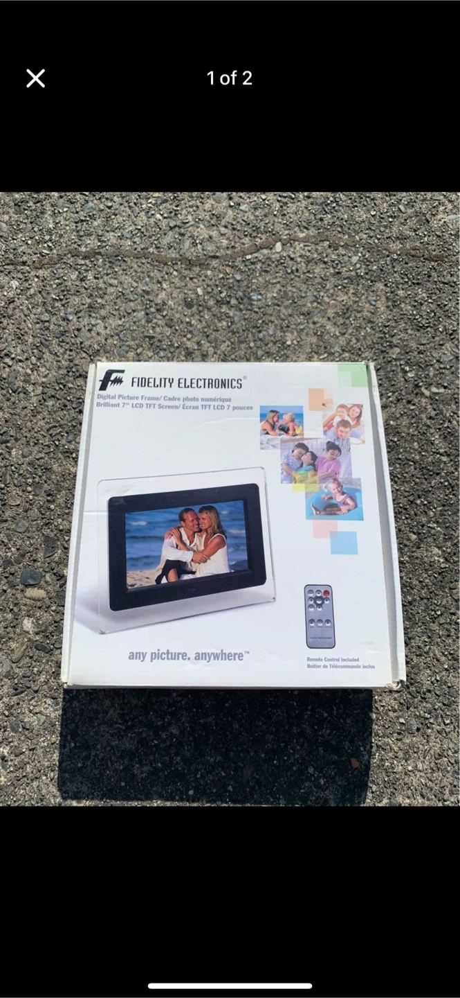 Selling a Fidelity Electronics digital photo frame! It has a brilliant 7" LCD TFT screen, so your photos will look great. It comes with its original box and a remote control. Now you can display any picture, anywhere in your home!