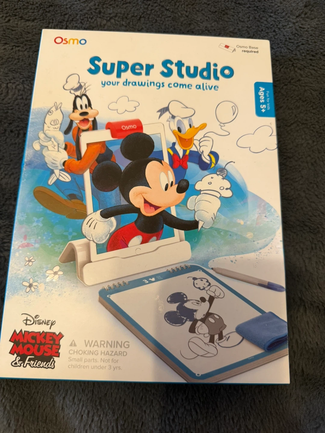 12Get creative with the Osmo Super Studio Disney Mickey Mouse & Friends game! It's perfect for kids aged 5 and up. Your drawings come alive on screen with Mickey and his pals. Includes the Super Sketchpad, 2 Super Studio Markers, and Super Sweeper. Osmo Base and device not included