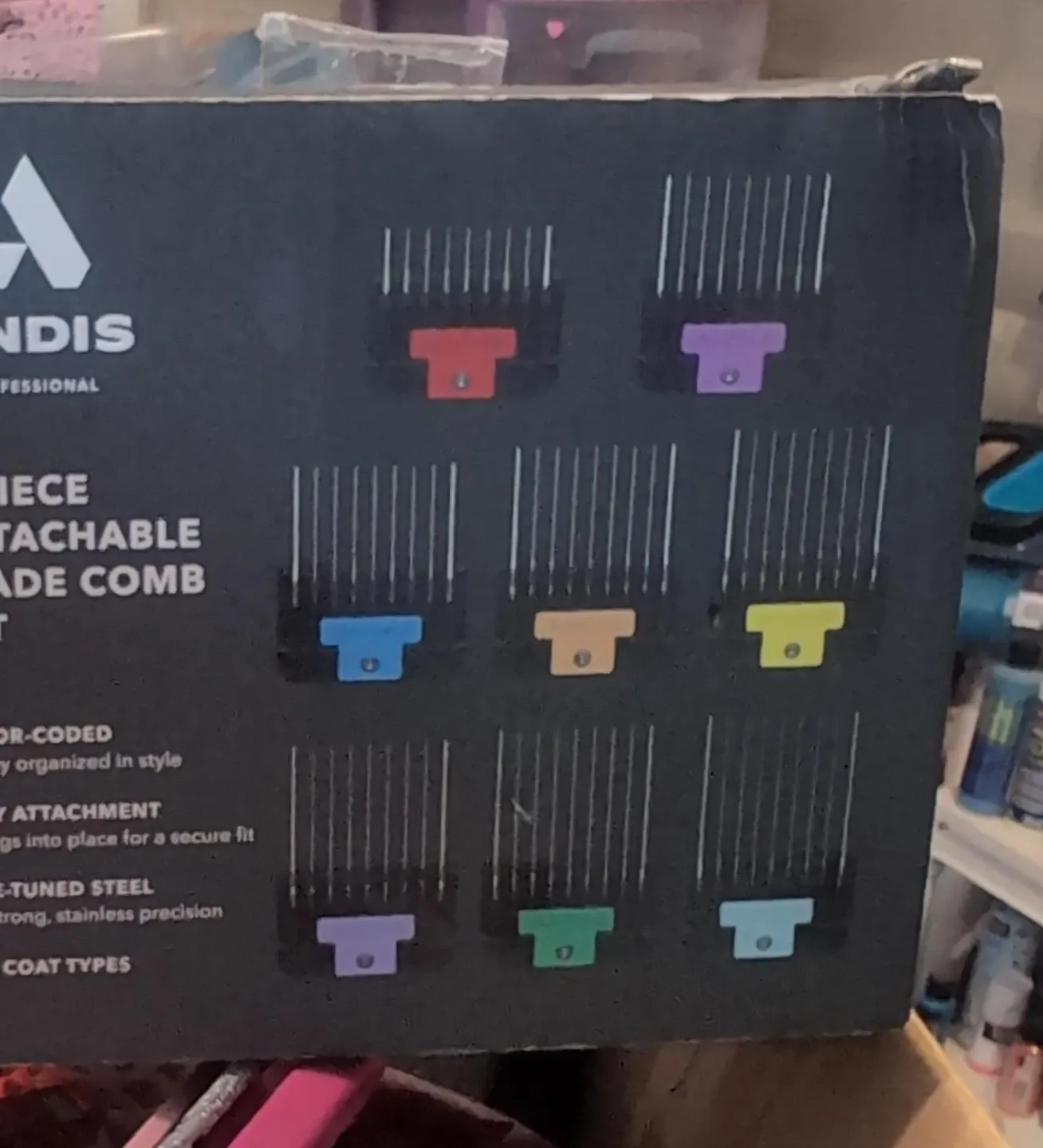 This set includes 8 attachable combs for your Andis clippers. They're colour-coded for easy organization and feature secure attachment. Made from strong, stainless steel for precise cutting.