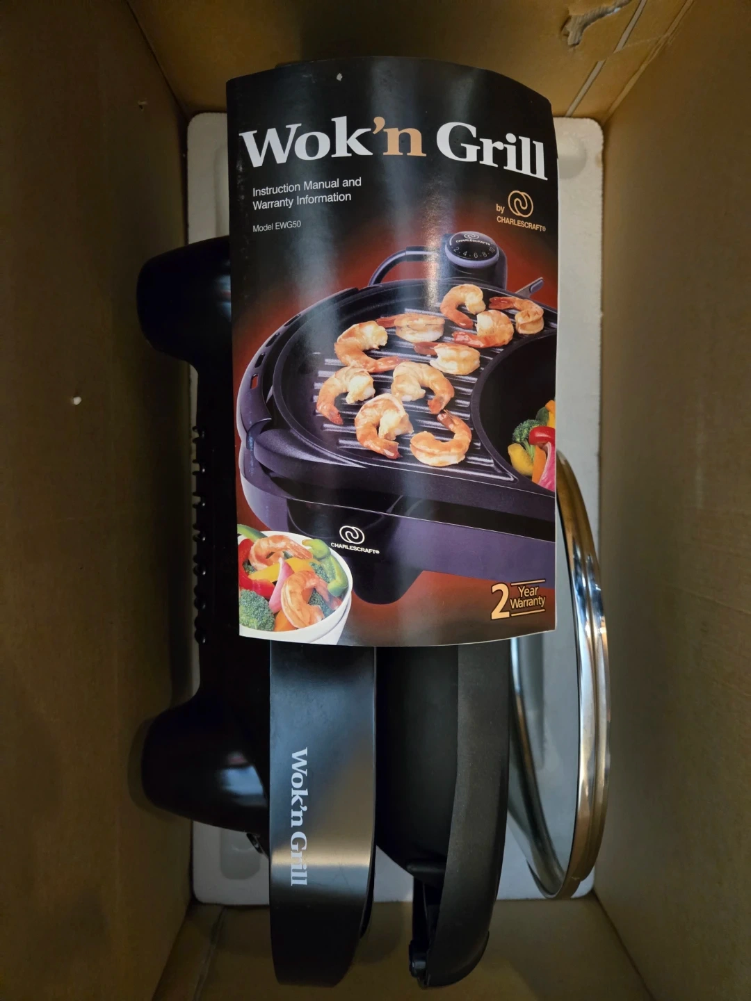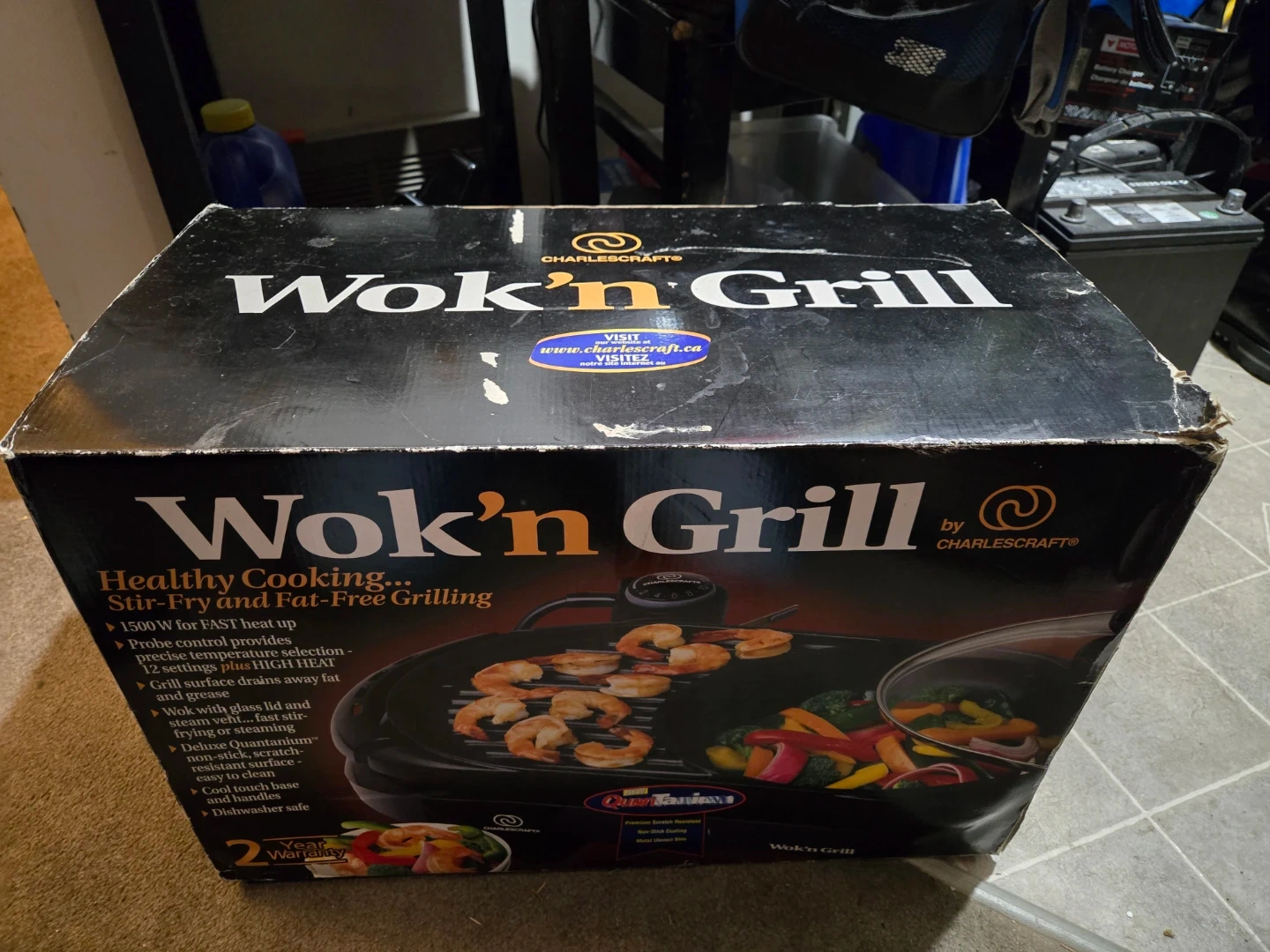 This is the Charlescraft Wok'n Grill electric cooktop, model EWG50. It offers 1500W for fast heat-up and features probe control. The grill surface drains away fat and grease for healthy, stir-fry cooking. It also comes with a glass lid and spatula.