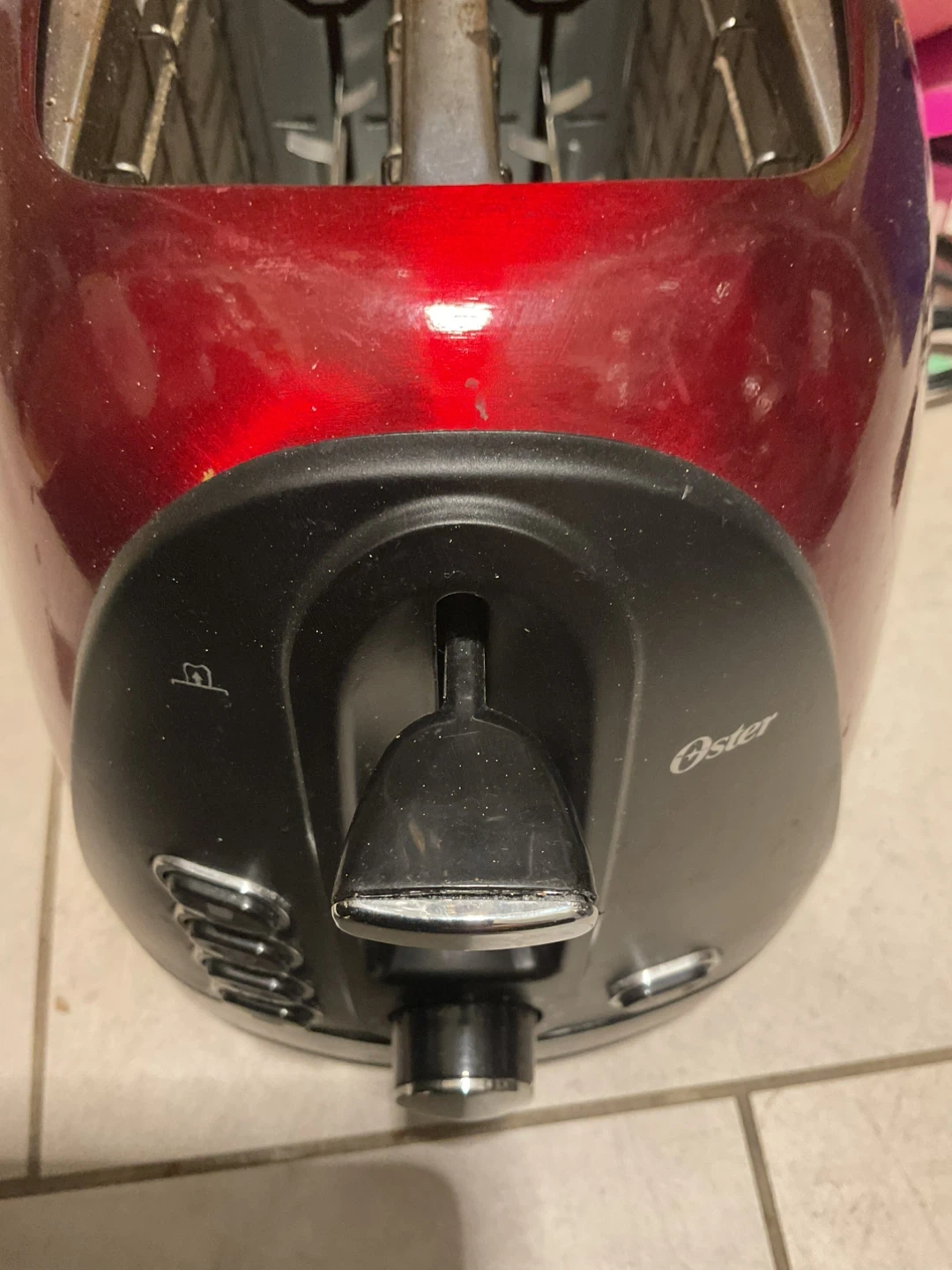 Selling a used Oster toaster in red. It's in good working condition and ready to toast your bread, bagels, and more! Perfect for your kitchen.