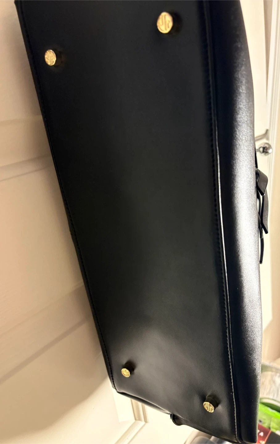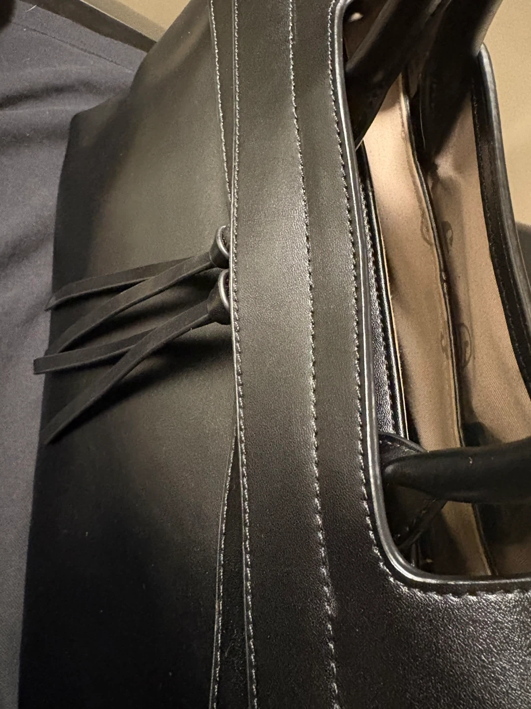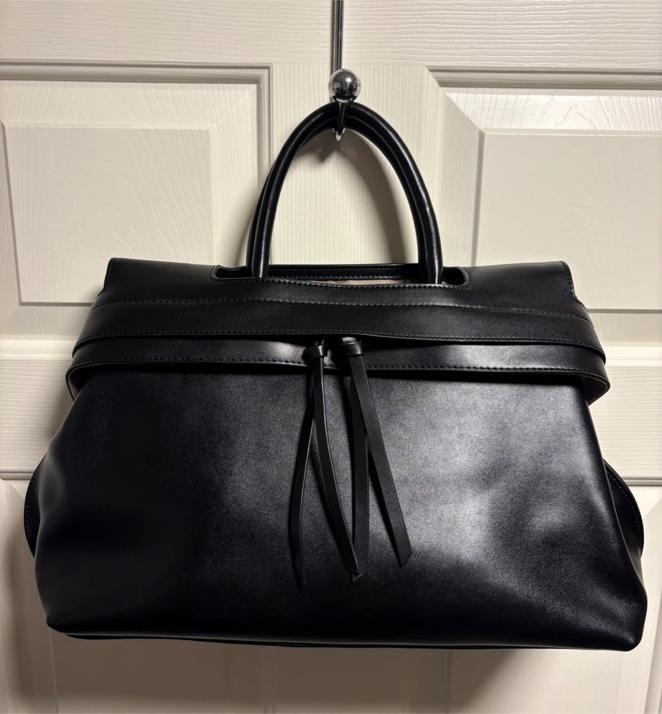 Beautiful Ségolène Sac Cuir handbag in black. Genuine leather exterior and interior lining. Features a zip closure and gold-tone hardware. Spacious interior with multiple compartments. It's a stylish everyday bag!