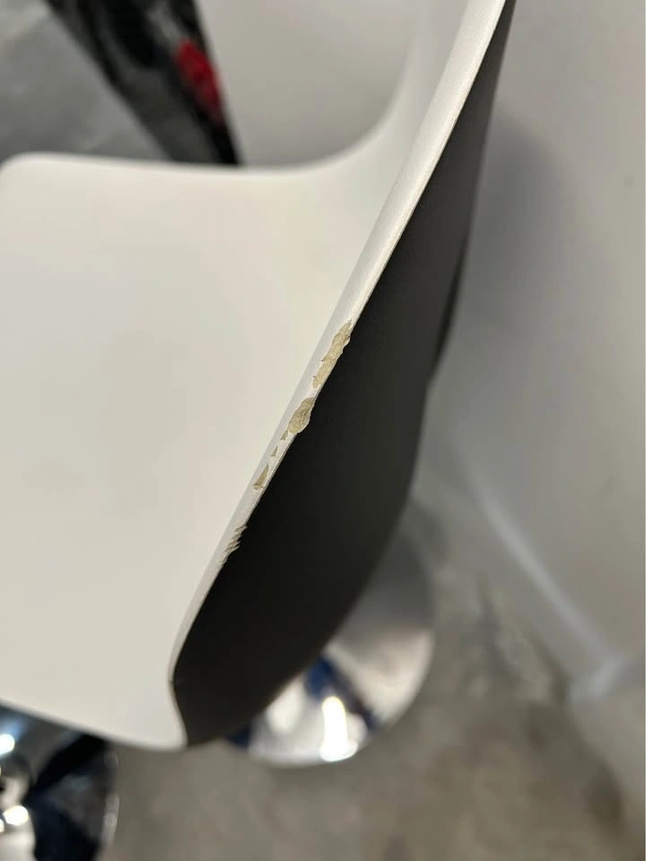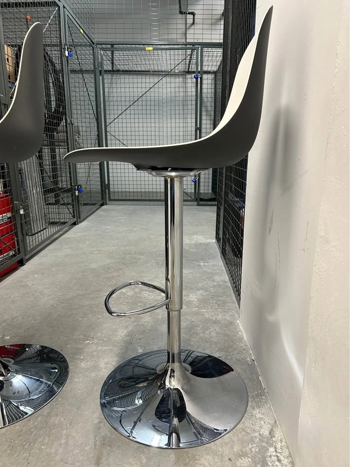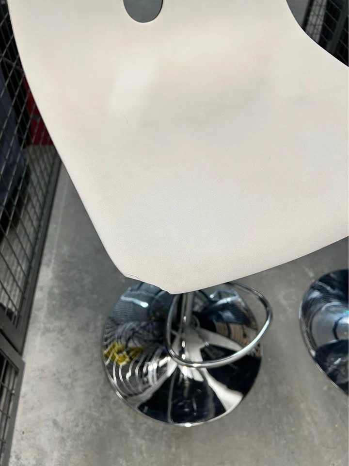 Work perfect, comfortable, rotating, adjustable height and very sturdy. We have loved them, but selling because of moving and can’t take them with us. Reduced price because one has a blunt chip on the edge of the stool (pictured) and one has a slight blunt chip at the top of the other (pictured), just from general wear and tear. Pick up in Brentwood.