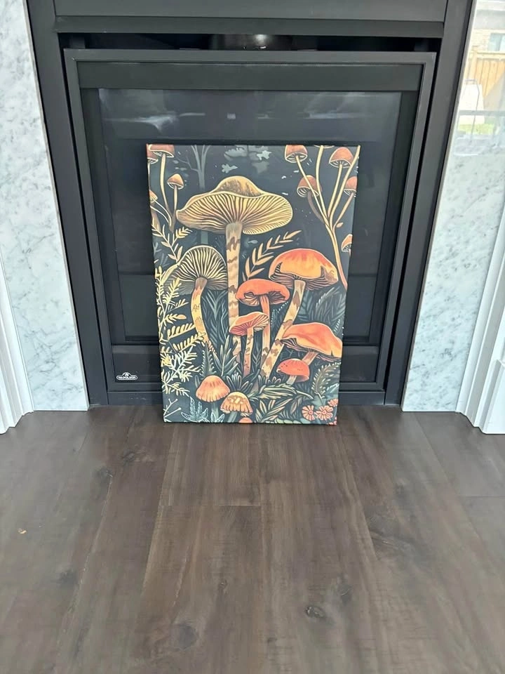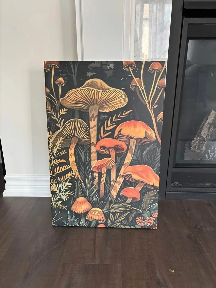 Beautiful mushroom print on canvas with amazing colours. Framed onto a 23.6”X15.7”X1.5” wooden frame. It's lightweight and ready to hang with hardware attached. Pick up in North Bowmanville near Middle Rd and Northglen Blvd. Check out my other listings for more selection!