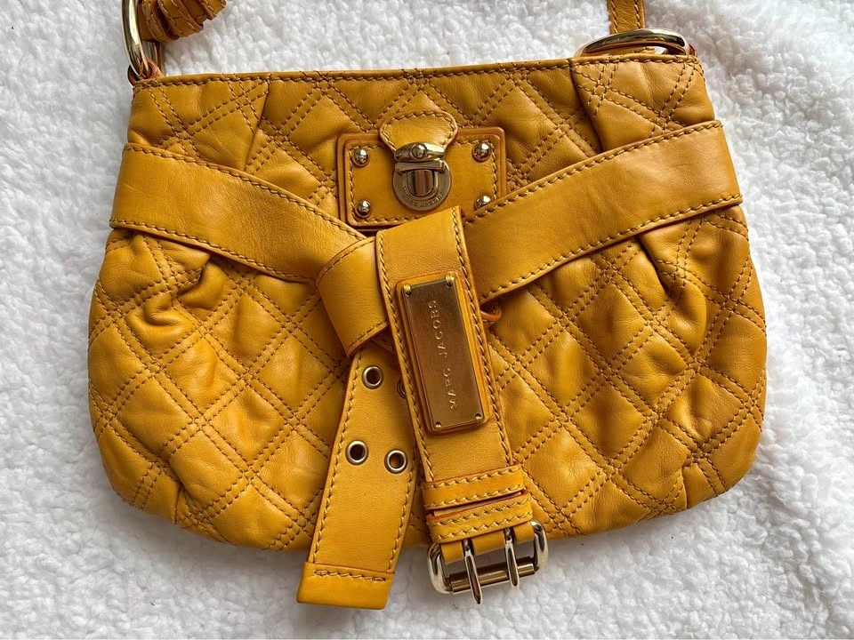 Beautiful Marc Jacobs Mustard/Yellow Quilted Leather Baroque Single Shoulder Bag with gold tone hardware in excellent condition. Preferably pick up near 16th and 9th line.