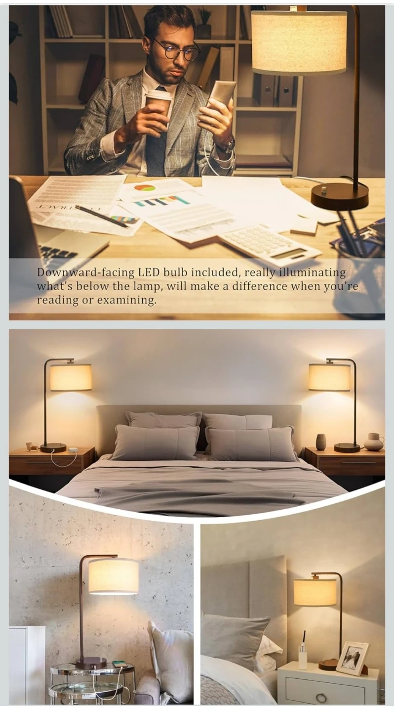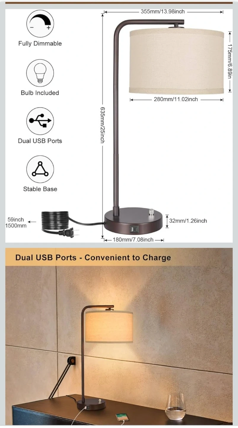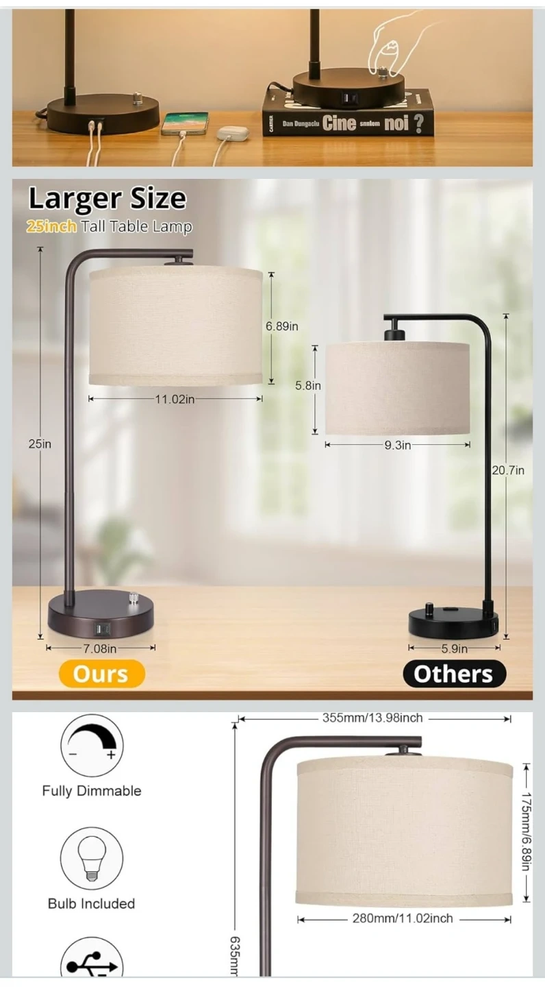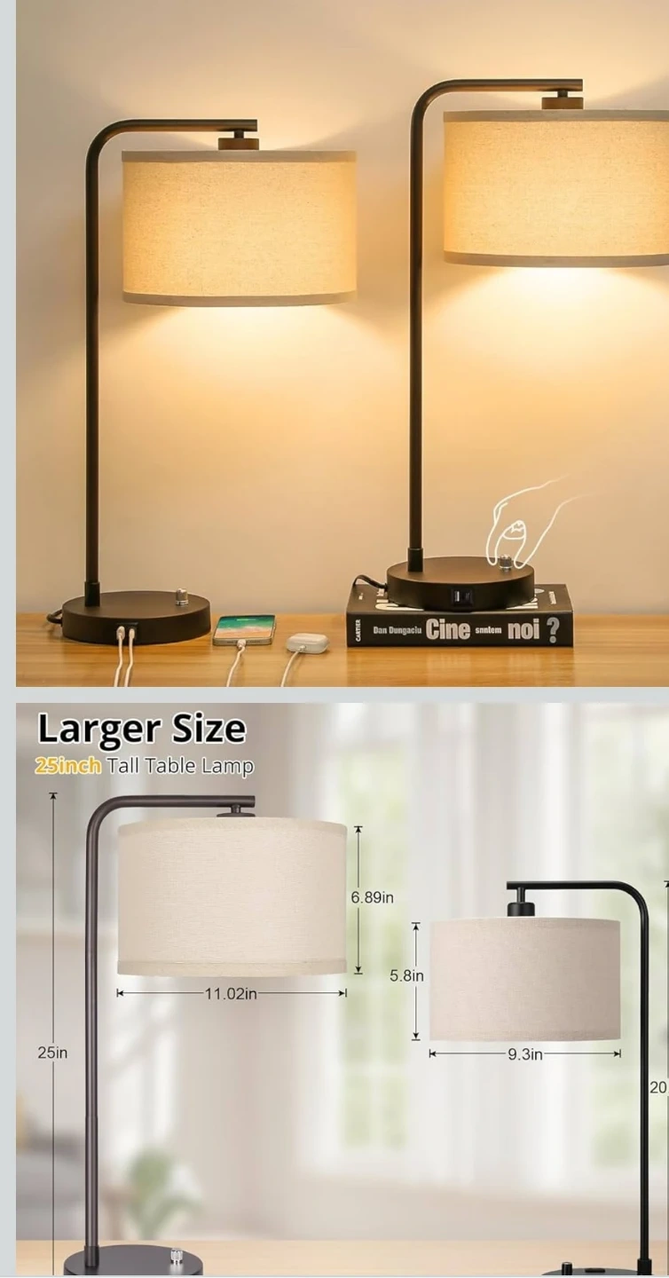 Set of 2 Fully Dimmable Bedside Table Lamps with USB Ports
