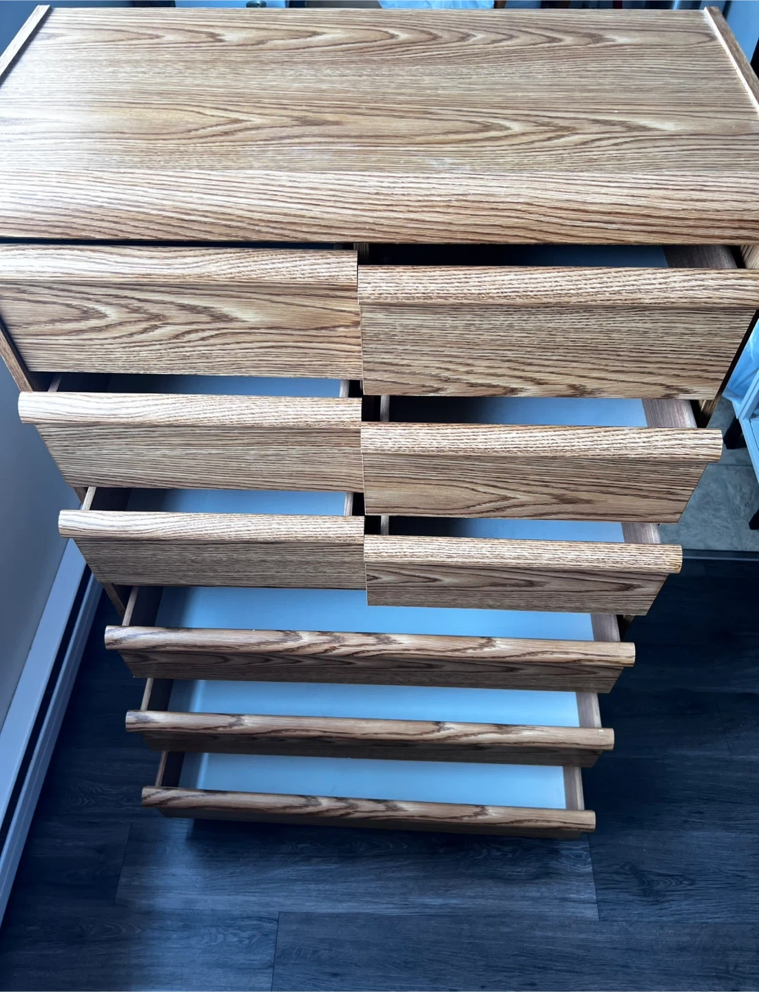Smart Storage: 3 split top drawers for organization + 3 deep full-width drawers for bulkier items.