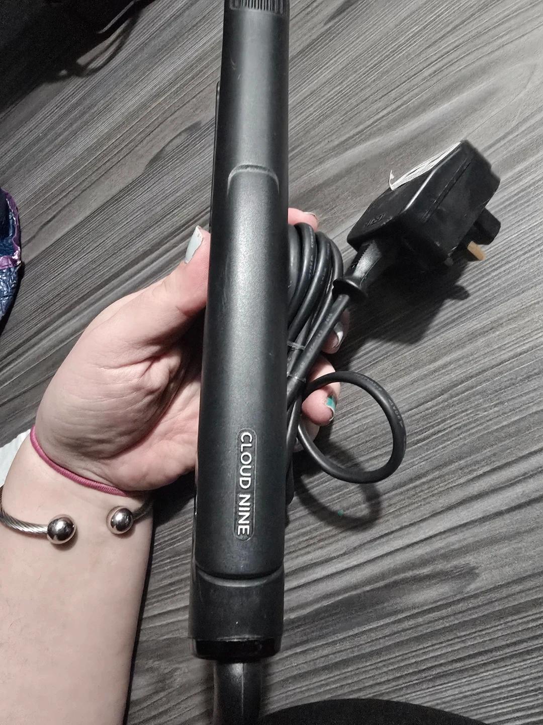 This is a black Cloud Nine hair straightener. It features adjustable temperature settings for different hair types. It's a great tool for achieving smooth and styled hair quickly!