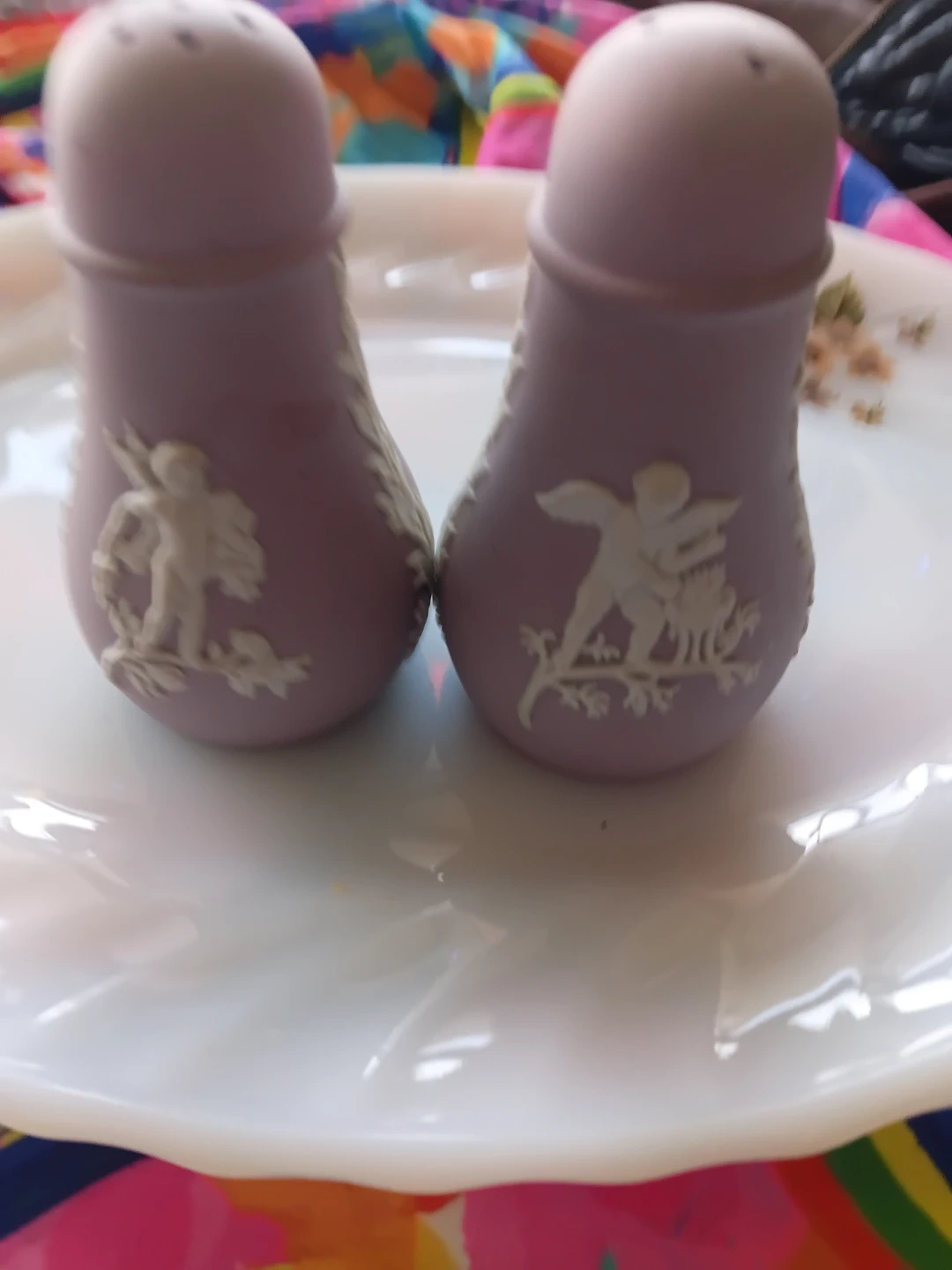 Here are a pair of Wedgwood lavender jasperware salt and pepper shakers! They feature the classic Wedgwood designs in white against the lavender background. Perfect for adding a touch of elegance to your dining table