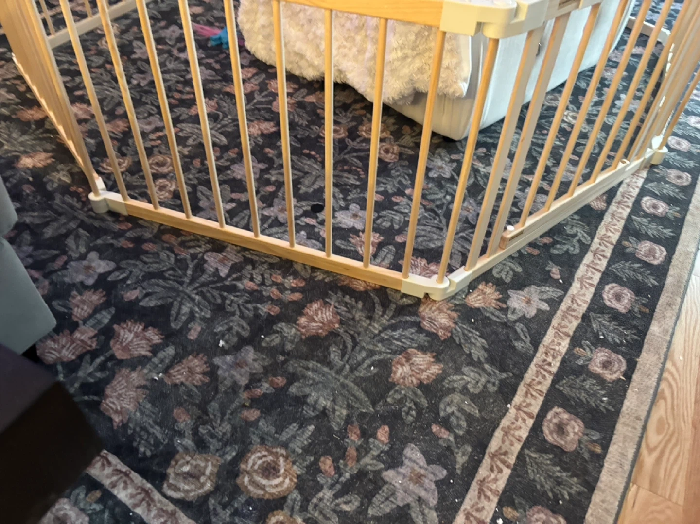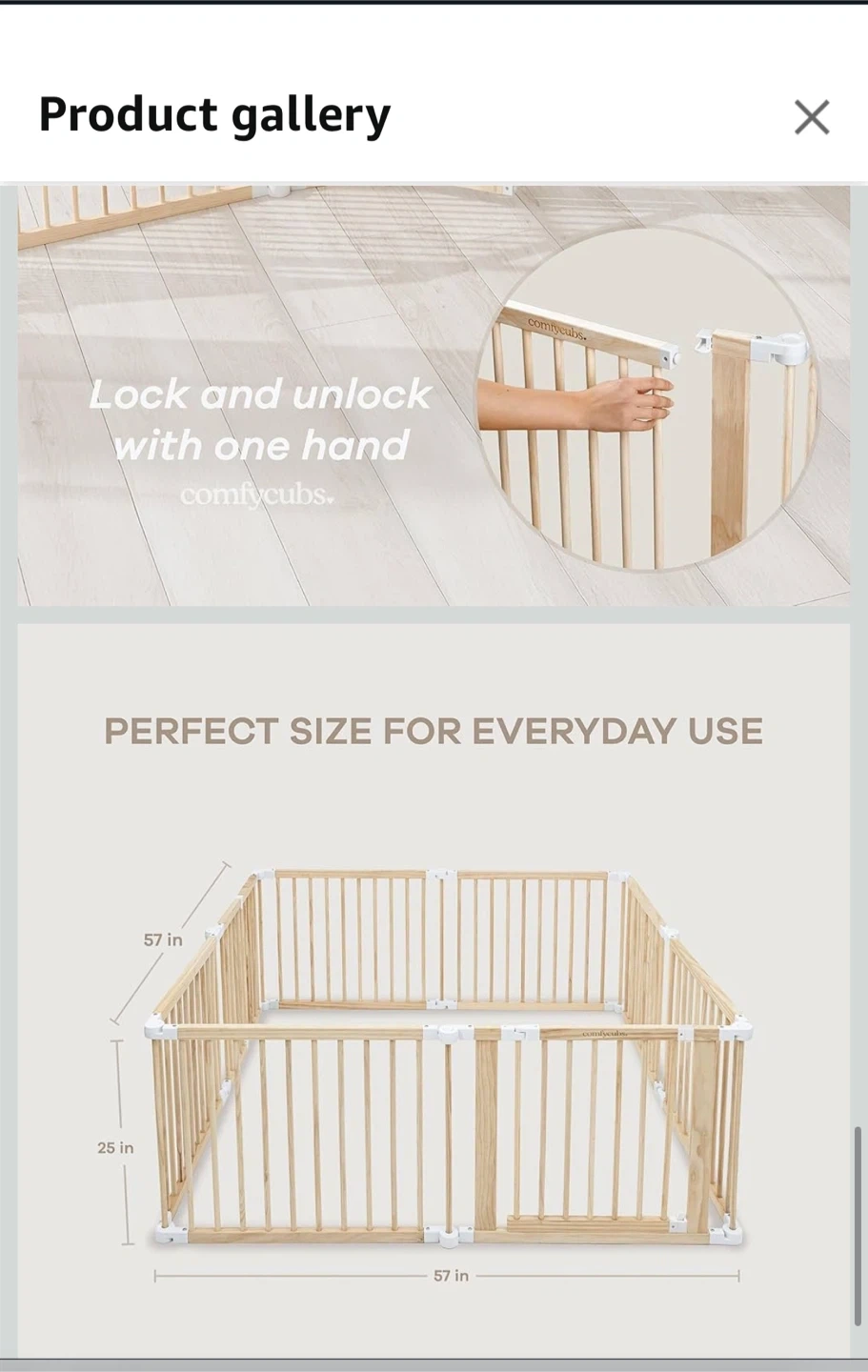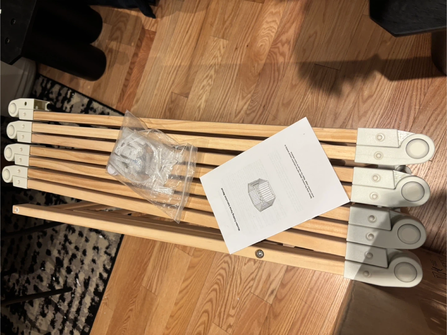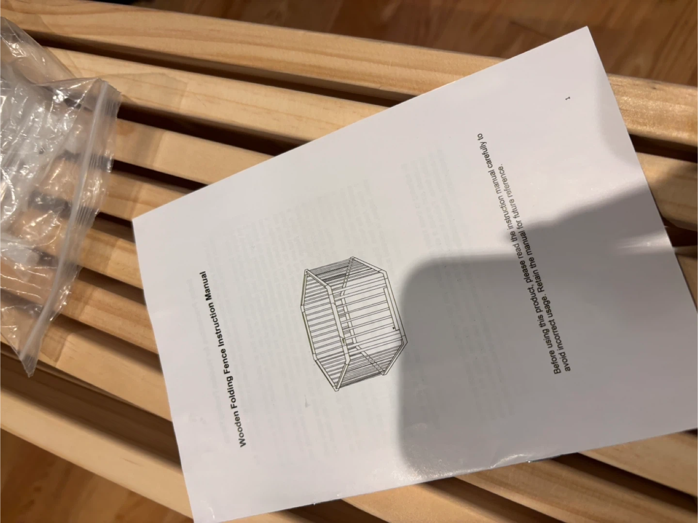 This wooden folding fence is great for creating a safe play area. It's made from light wood and comes with an instruction manual. Easy to set up and fold away! Tiny crack during assembly, item is new.