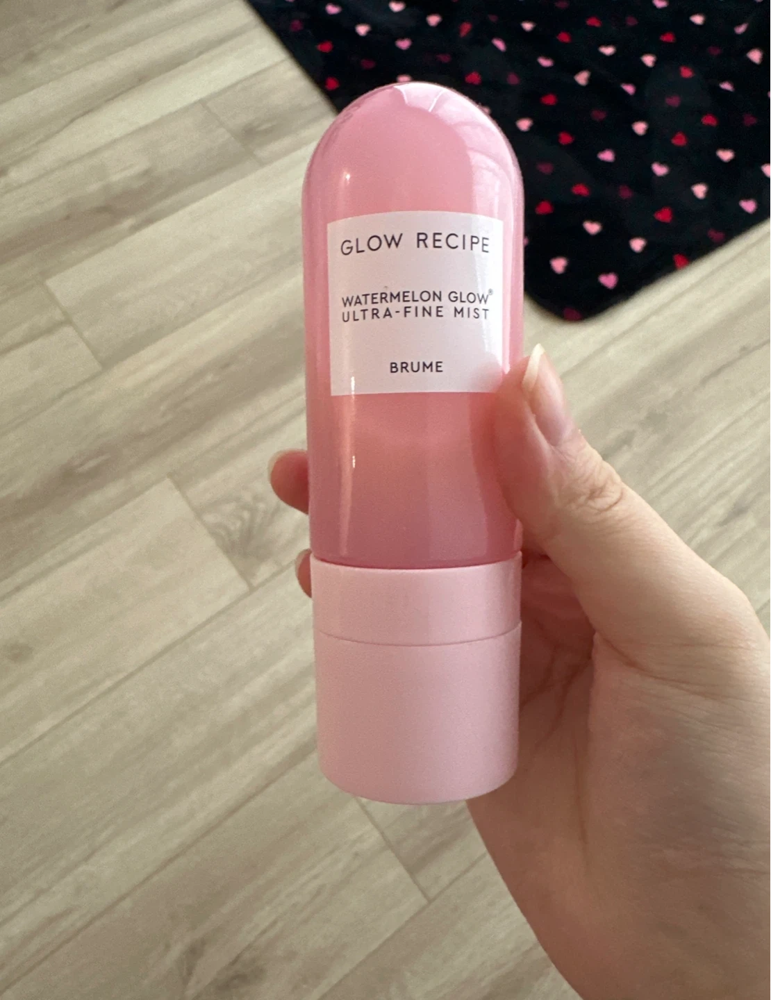 Glow Recipe Watermelon Glow Ultra-Fine Mist. This refreshing mist is designed to hydrate and soothe your skin. It's perfect for a quick refresh throughout the day!