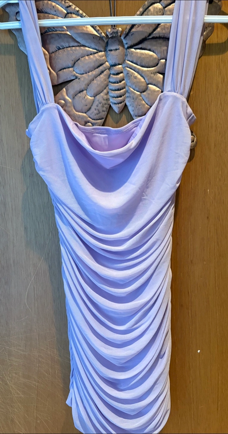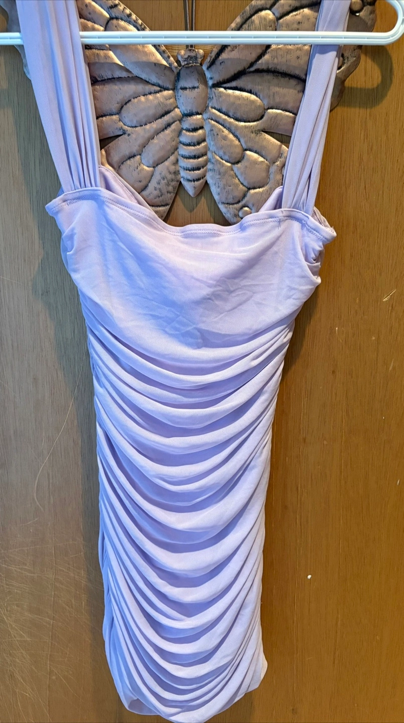 Lightweight lavender mini dress. Ruched detailing. Square neckline. Perfect for a night out. Price is firm. Never been worn. Pick up in port credit.