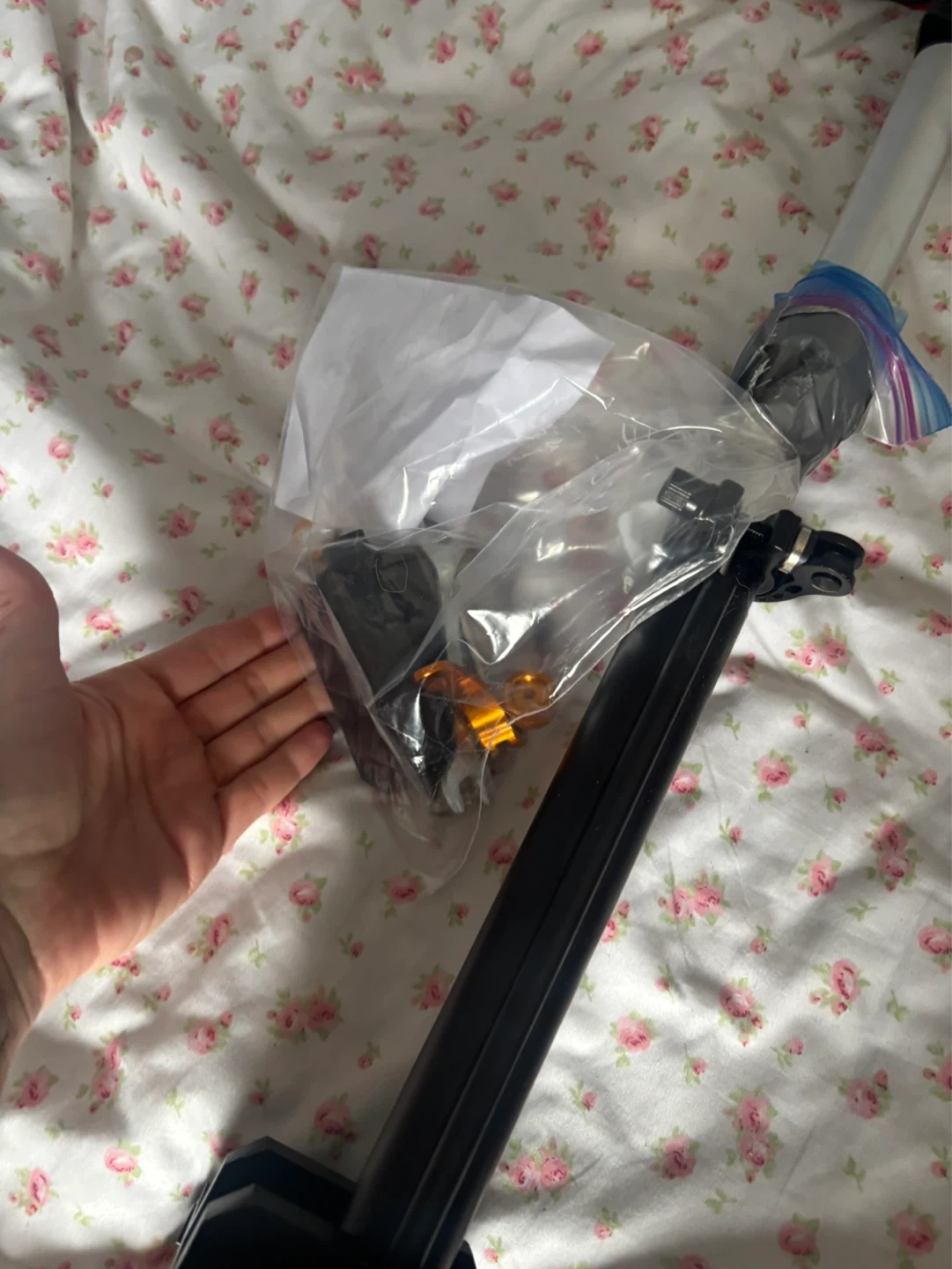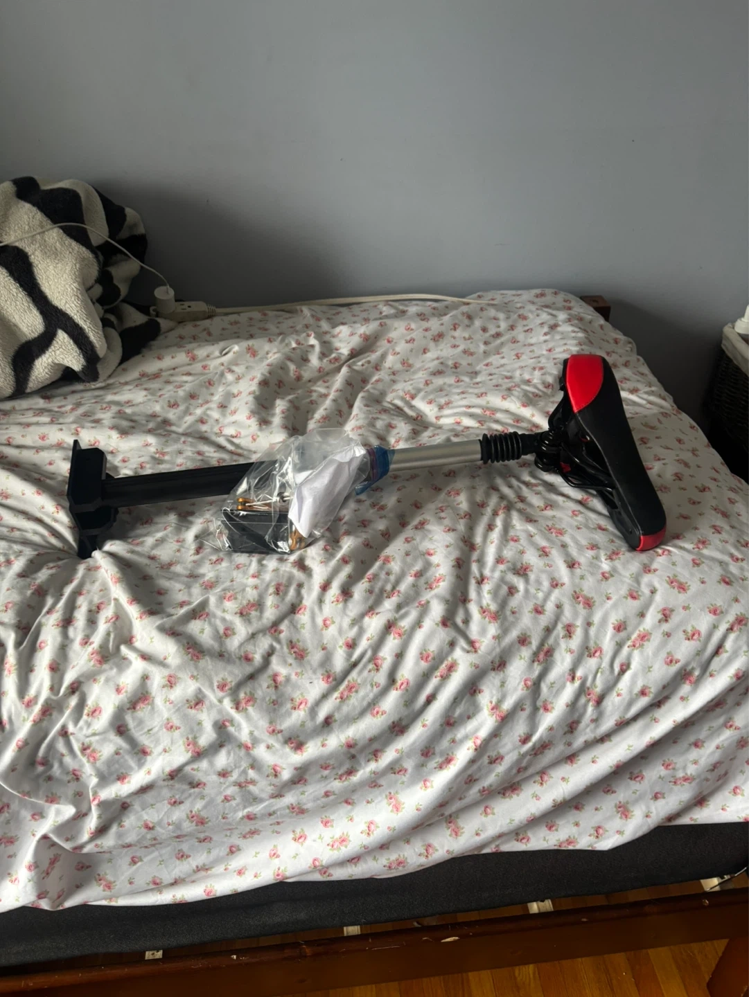 Comfortable red and black bicycle seat with a metal post. Includes mounting hardware for easy installation. This seat is designed for added comfort on longer rides.