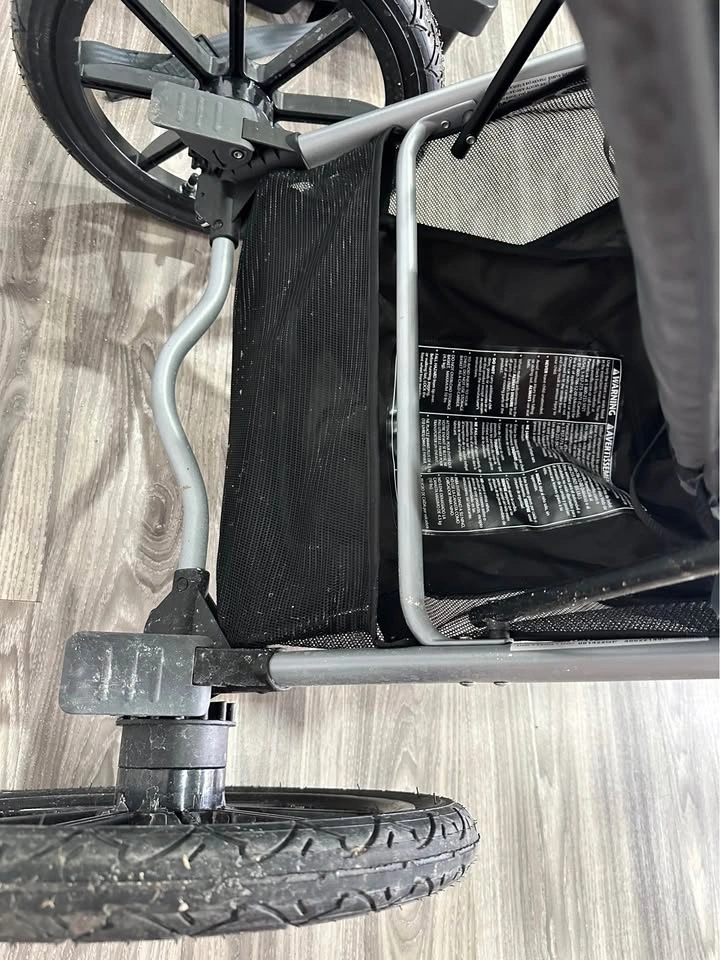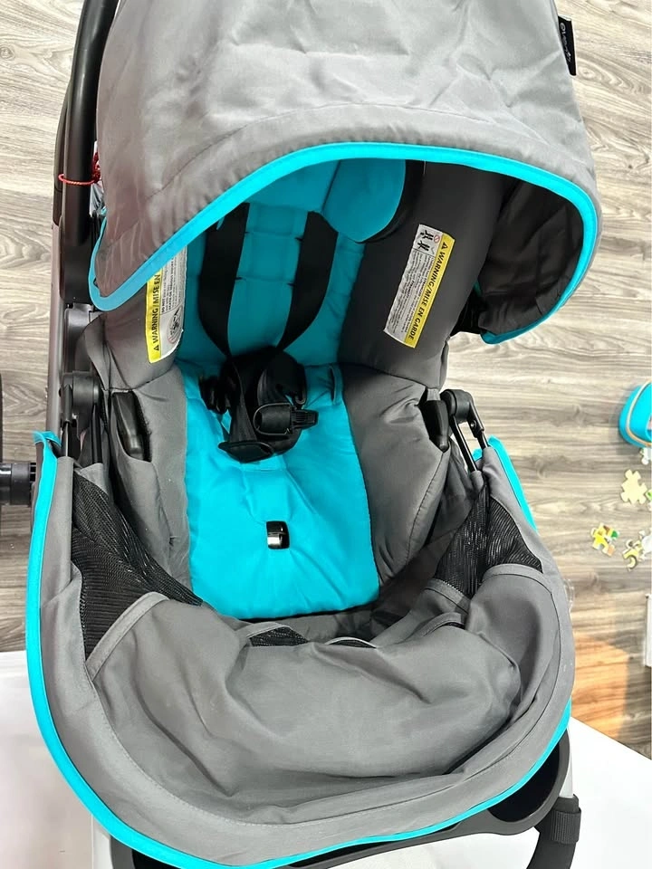 Move freely with baby in tow. Lightweight jogger stroller + ultra-light infant car seat. Smooth all-terrain ride with suspension and air-filled tires. Front wheel lock for stable runs. One-step compact fold, self-standing. Breathable mesh for airflow. Large storage + parent cupholders + child snack tray. Car seat safety tested beyond federal standards.