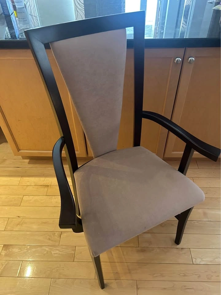Includes 10 chairs (2 with arms), some with minor scratches. (Take as is)