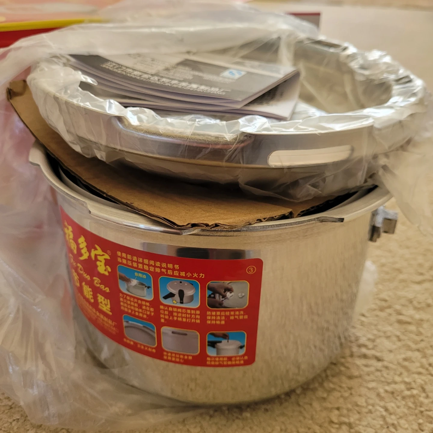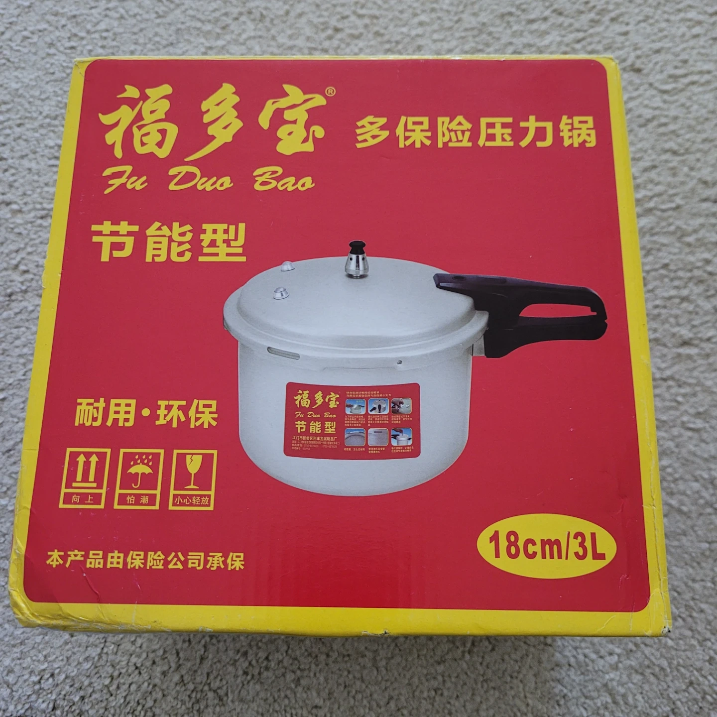 A Fu Duo Bao pressure cooker, 18cm and 3L capacity.