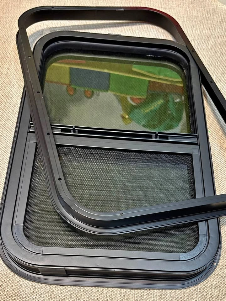 Durable Teardrop RV Privacy Sunshade Window New in box Pickup in Barrhaven, Mountshannon and Daventry street intersection Size: 590 x 390 mm (23.23" x 15.35") Mounting hole size: 565 x 360 mm (22.24" x 14.17") Installation thickness: 3–6 mm or 55–60 mm sheet metal Horizontal or vertical slide design Tempered tinted glass for privacy & durability Built-in screen allows airflow while keeping bugs out Aluminum frame is lightweight & corrosion-resistant Weatherproof seal for long-lasting use Passenger side orientation No bolts included rv window, teardrop trailer window, camper window, rv sunshade window, horizontal sliding rv window, vertical sliding rv window, rv privacy window, trailer replacement window, tempered glass rv window, campervan window, caravan sunshade window, small rv window, tinted rv window, motorhome window, camper privacy shade, trailer ventilation window, rv upgrade parts, van conversion window, rv accessory, camper trailer window, teardrop rv parts, passenger side rv window, weatherproof rv window, aluminum frame trailer window