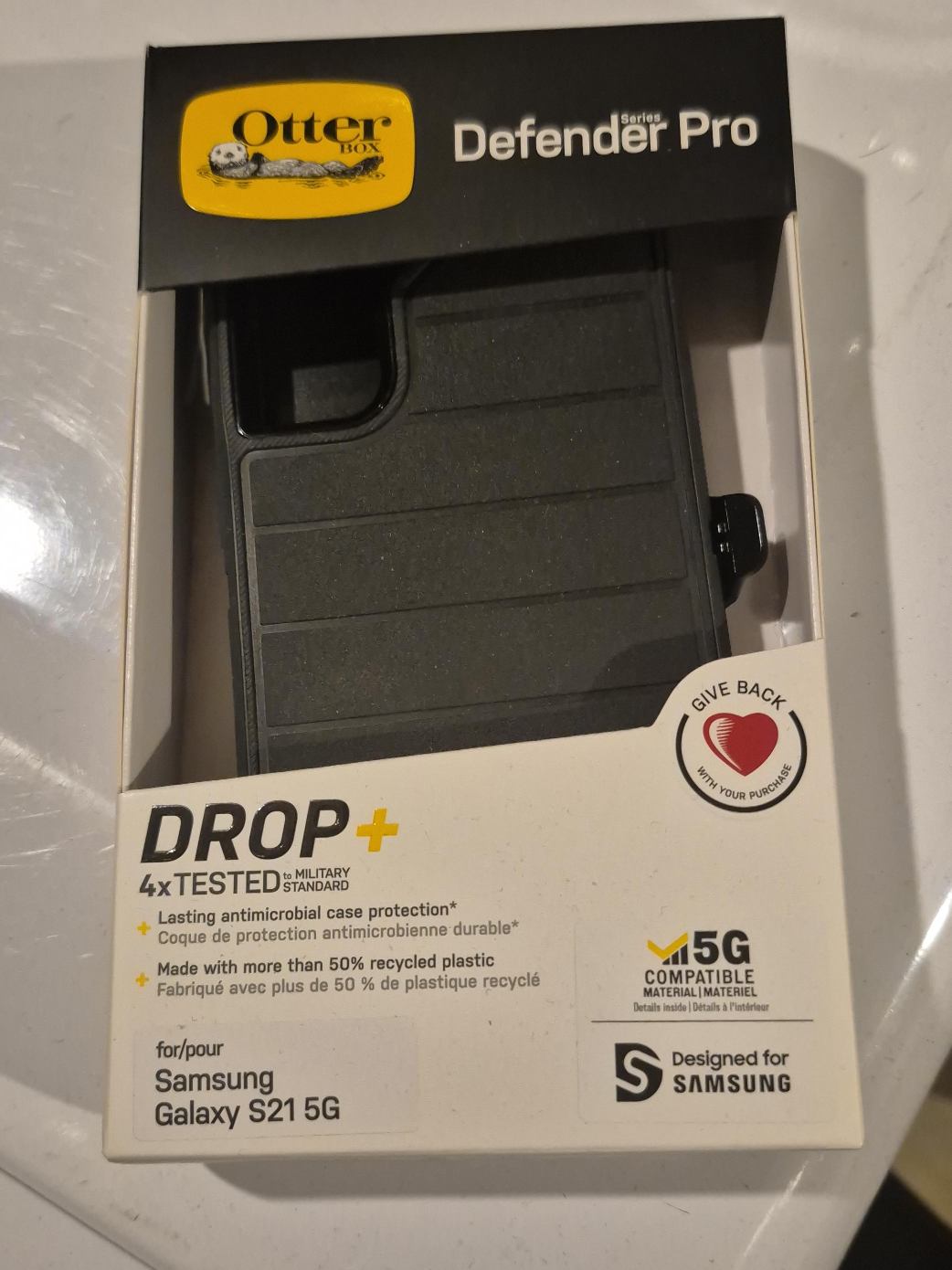 Selling a brand new OtterBox Defender Pro case for the Samsung Galaxy S21 5G! This case offers 4x tested to military standard drop protection and lasting antimicrobial case protection. It's also made with more than 50% recycled plastic. Box included!