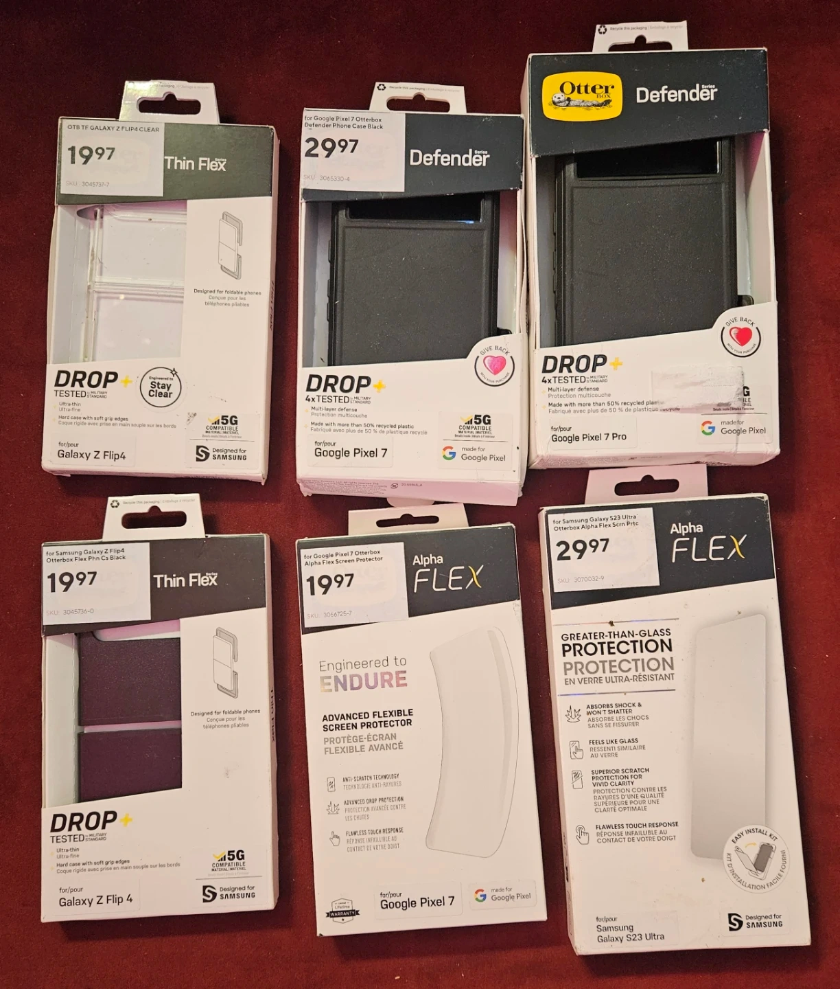 15Selling a variety of Otterbox and Thin Flex phone cases and screen protectors. All are brand new in their original packaging! Perfect for protecting your Google Pixel or Samsung Galaxy phone.