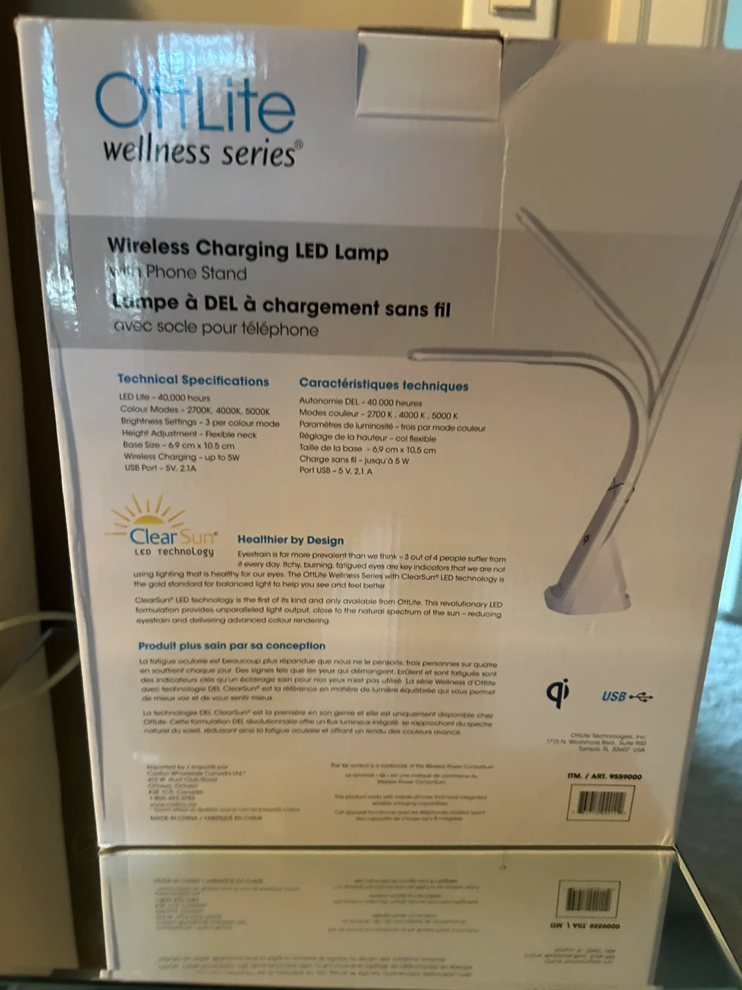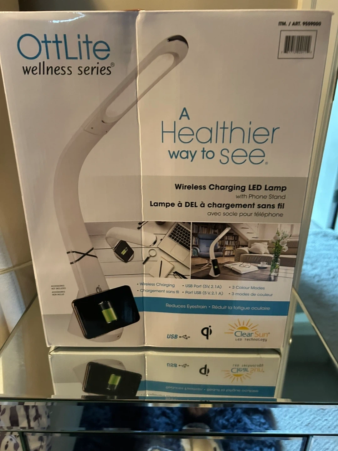 84Selling an OttLite Wellness Series Wireless Charging LED Lamp with Phone Stand. It features ClearSun LED Technology that reduces eyestrain and delivers advanced colour rendering. The lamp has 3 colour modes and a USB port for charging. It also has wireless charging capabilities. A healthier way to see!