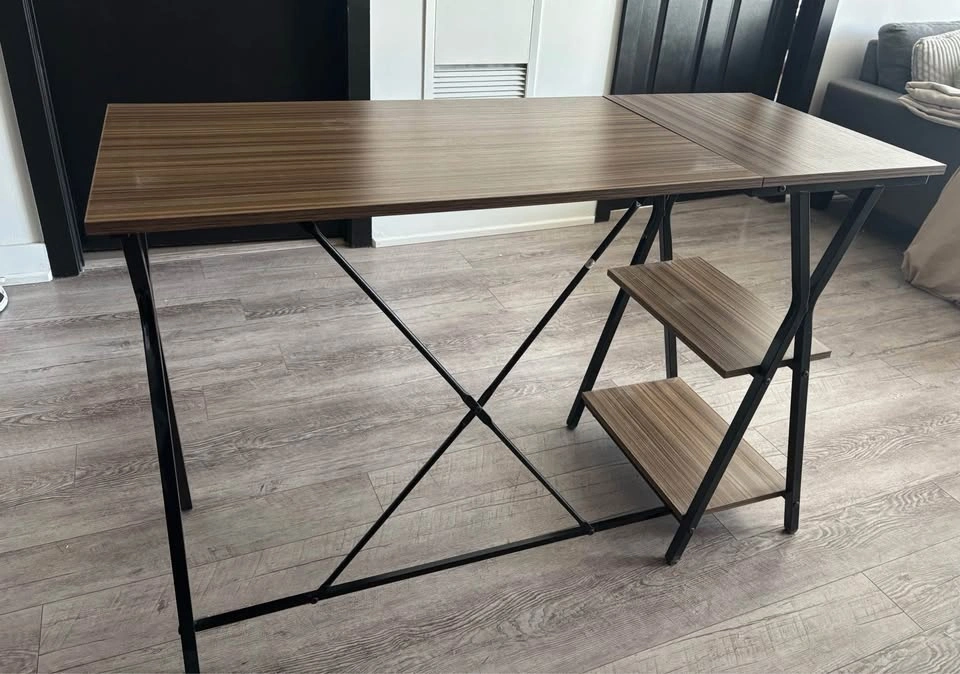 Selling a light brown Desk with 2 shelves, perfect for any workspace, home office, or study area.