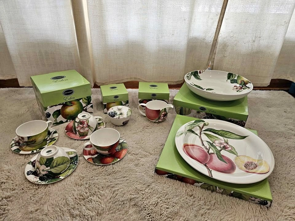 Beautiful new Portmeirion porcelain dish set with original boxes. Pattern: Eden