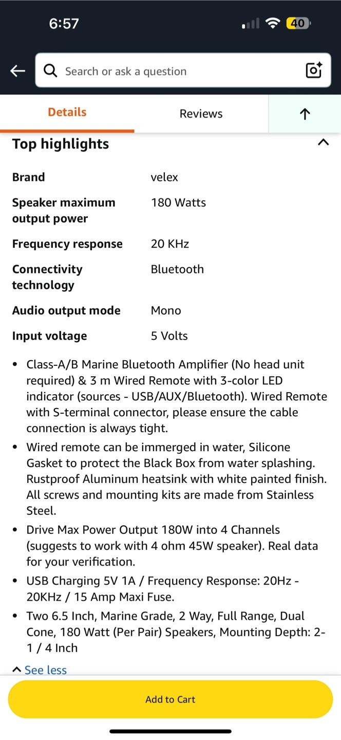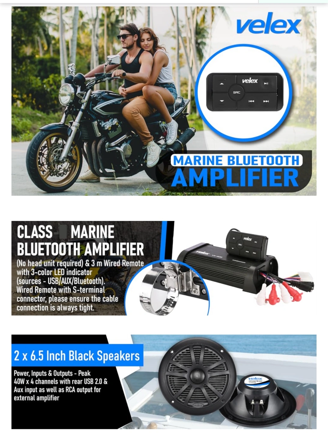Velez Marine Bluetooth Amplifier Speaker Package - Black