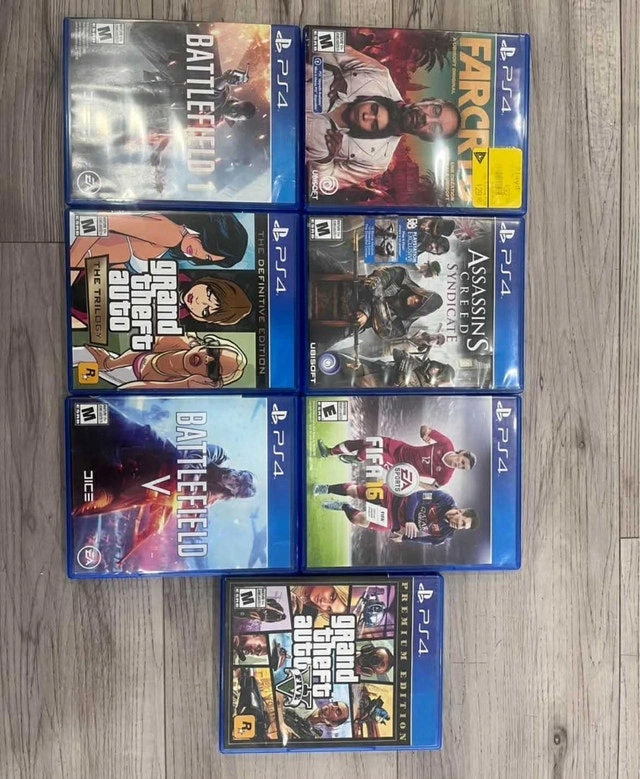 Selling my PlayStation 4 in great condition! Perfect for gamers looking to jump right in. Included in this bundle: PlayStation 4 console, 2 wireless controllers (ideal for multiplayer), 7 popular games included as shown in the picture above, and an HDMI cable for easy connection to your TV. The console has been well taken care of and works perfectly. All accessories are included, so you can start playing immediately.