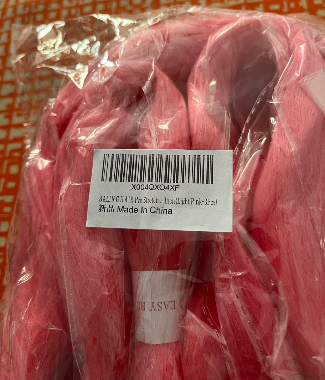This is a set of three packs of BALING HAIR pre-stretch braiding hair. The colour is a vibrant light pink. It's designed for easy braiding and styling.