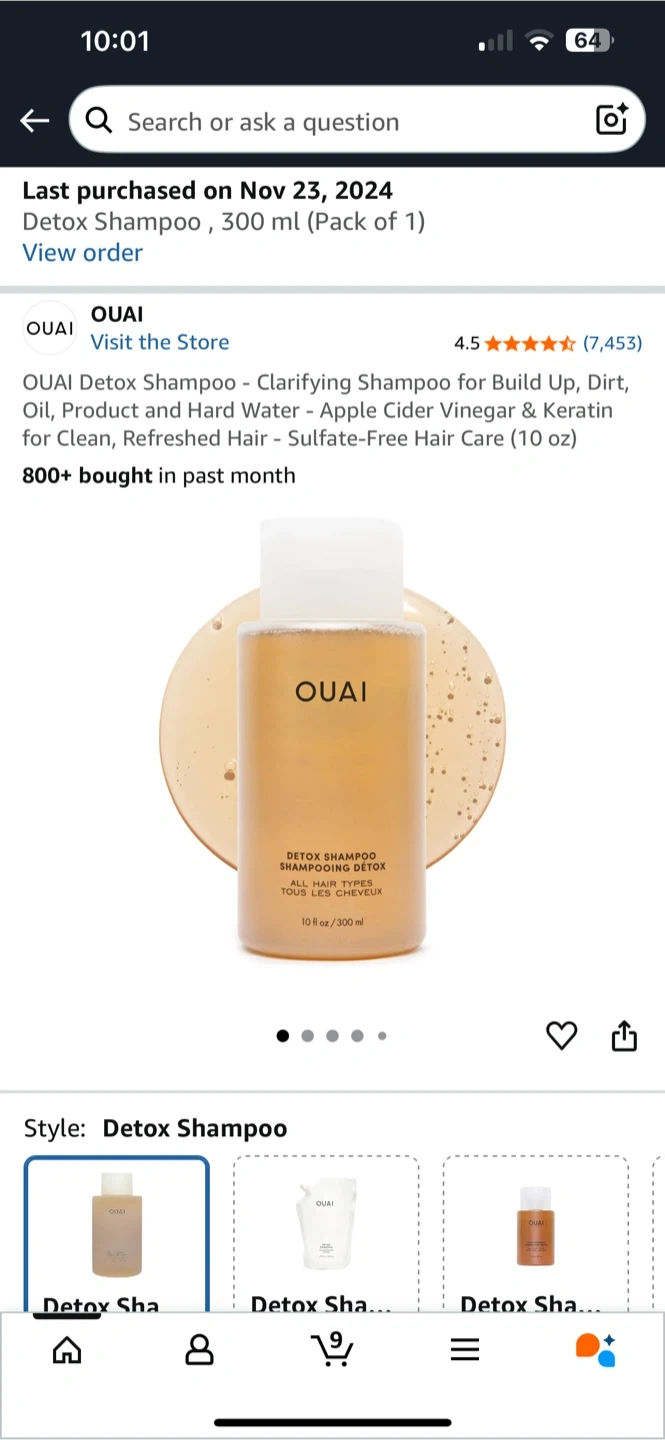 Selling a bottle of OUAI Detox Shampoo. It's a clarifying shampoo designed to build up dirt, oil, and hard water. Contains apple cider vinegar and keratin for clean, refreshed hair, and is sulfate-free Seal is open but unused. Price is firm