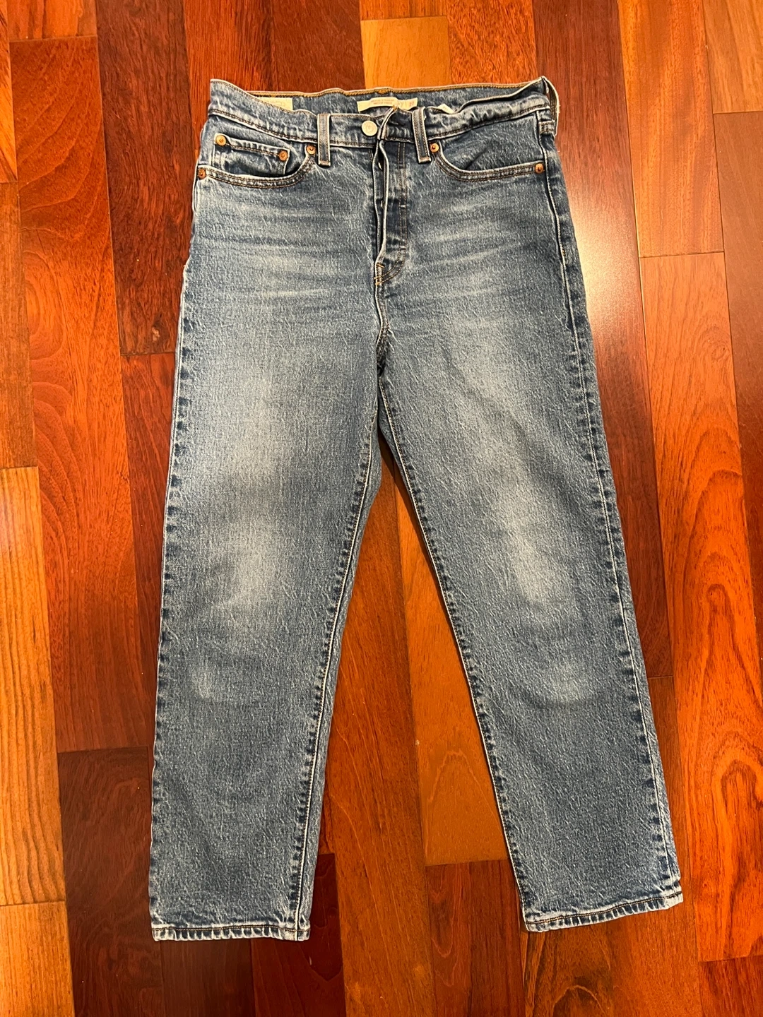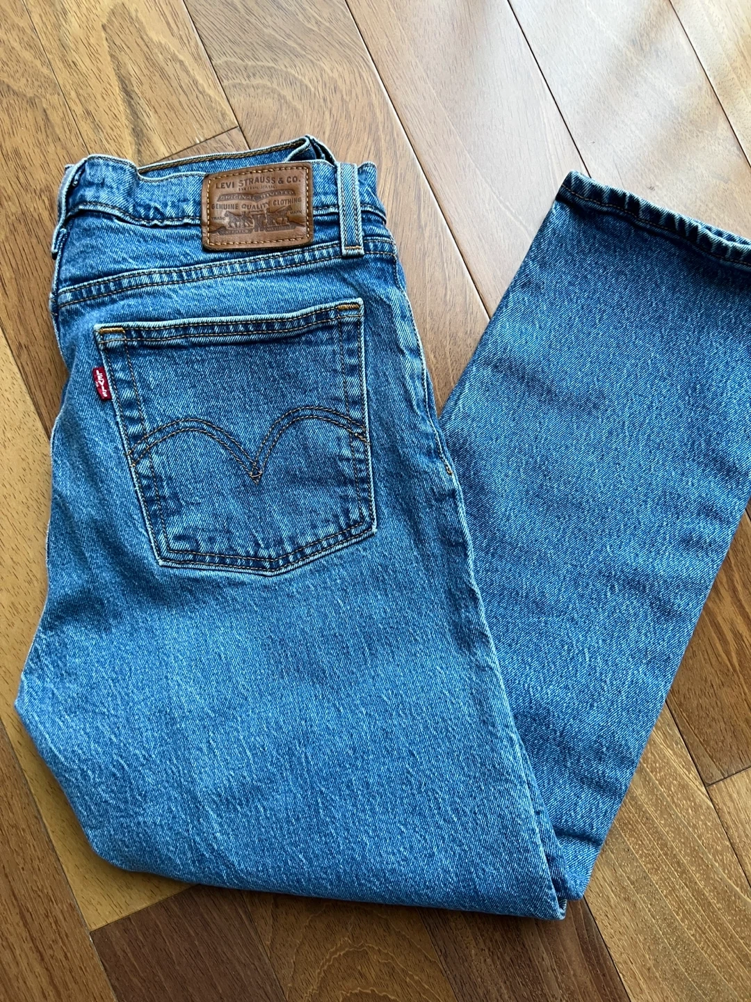Classic blue denim jeans from Levi's. These are the Wedgie Straight style in a size 27/26