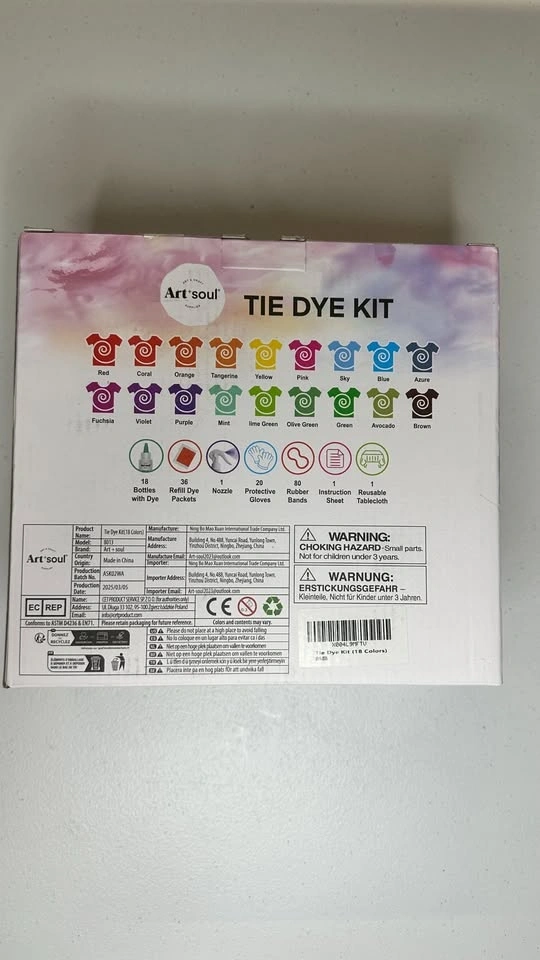 Selling a brand new, unused Art+soul 18 Colors Tie Dye Kit. This is the perfect DIY fabric dyeing kit for arts & crafts, family parties, or birthday gifts. I am selling this fun activity set for $15!