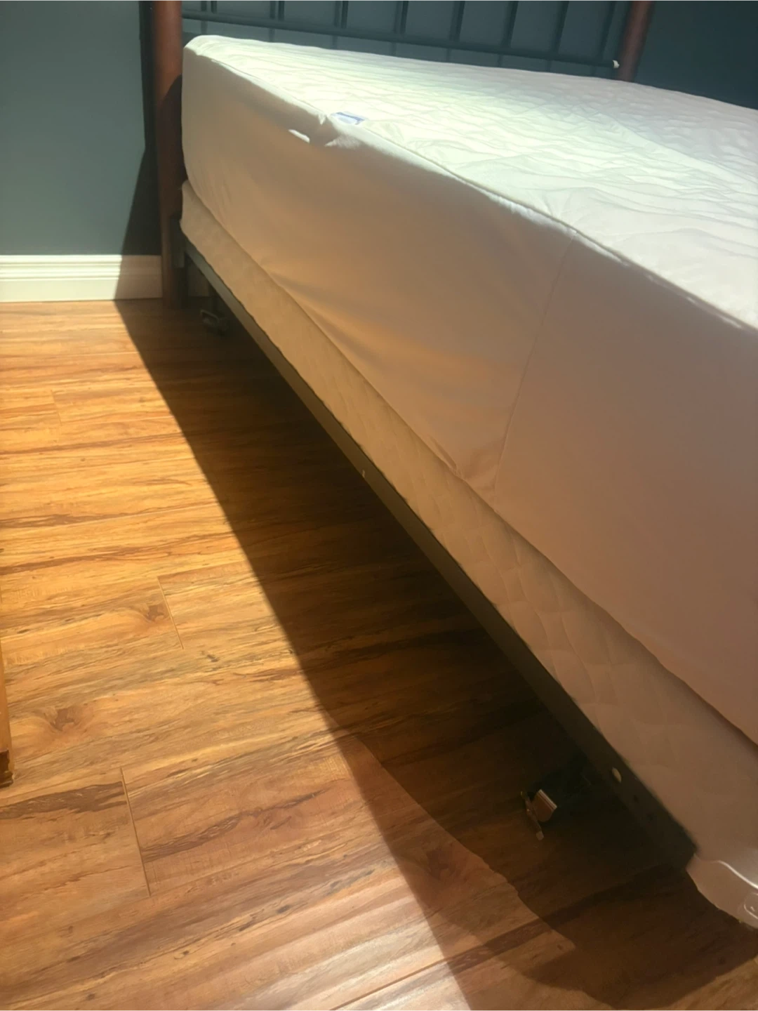 Barely used full Double Bed - Frame, Box Spring, and Mattress. In great condition. Mattress is approximately 53” wide and 74” long
