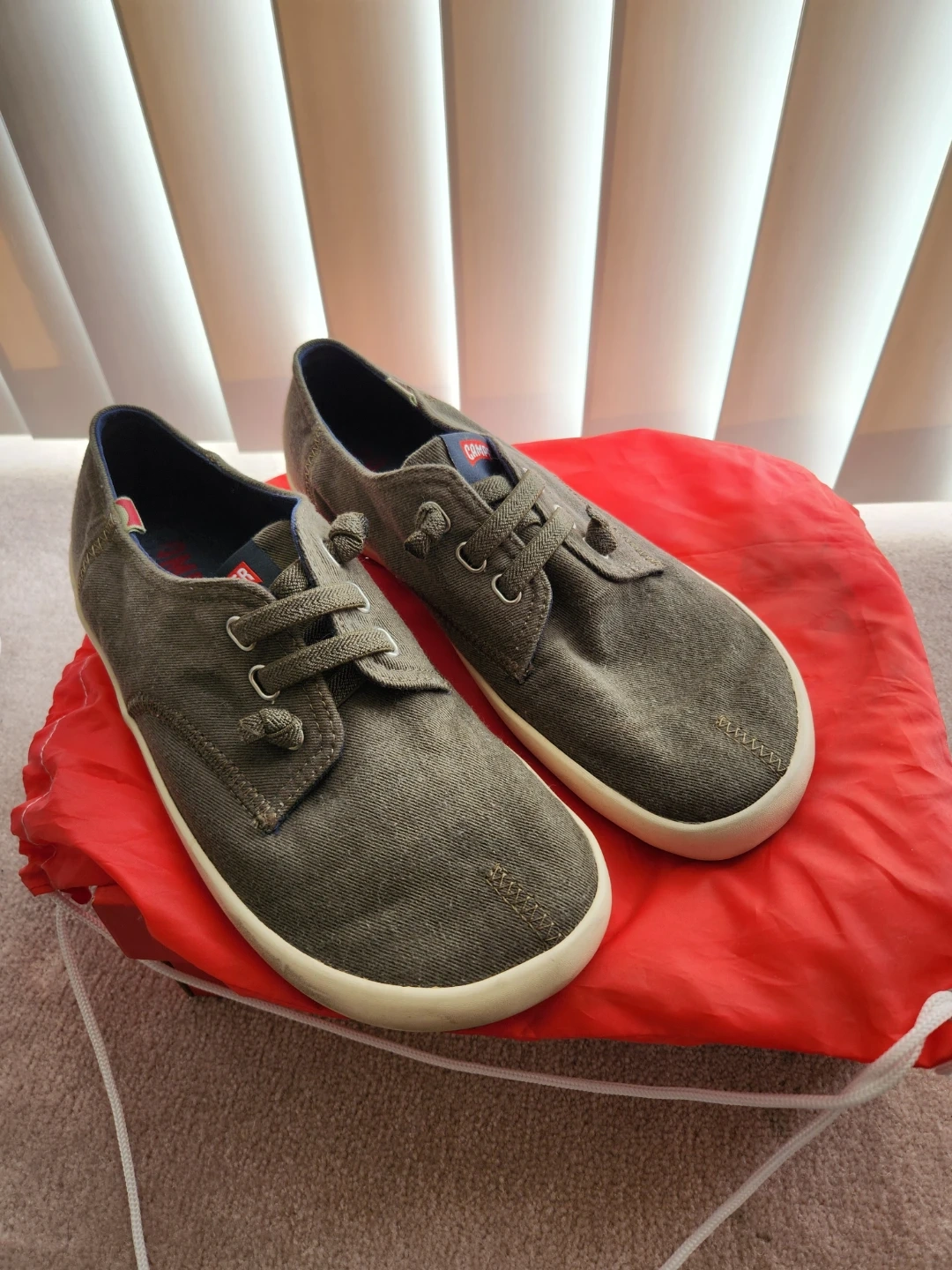 These Camper sneakers are made from a durable canvas material. They feature a lace-up closure and a comfortable rubber sole. These shoes are great for casual wear. Worn once