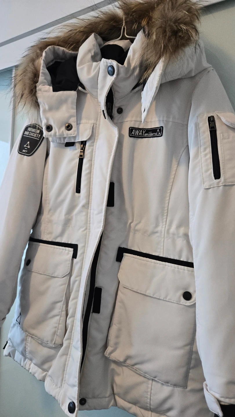 70Selling a stylish white winter parka from Our Society 13. It's in great condition and ready to keep you warm this winter!