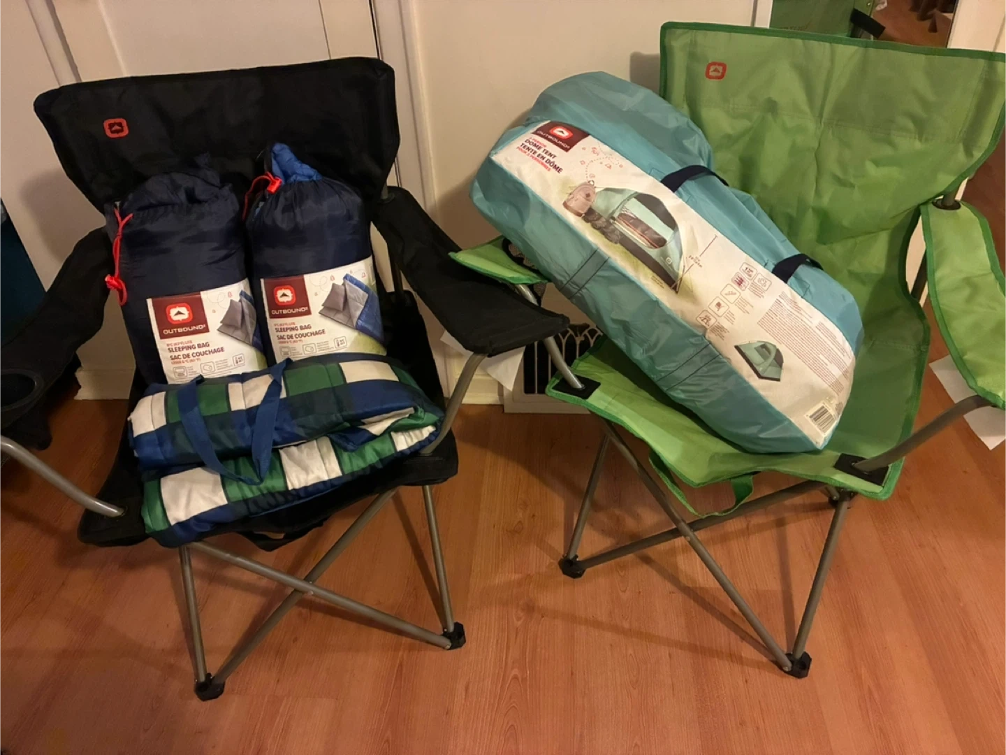 65Camping bundle for sale ! Used once ever and sleeping bag and picnic blanket have been machine washed. Selling an Outbound 3-person dome tent. Also included are two Outbound sleeping bags and a foldable carry picnic blanket.