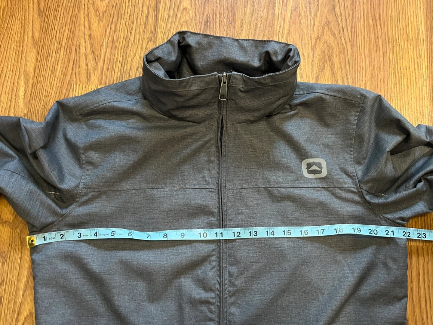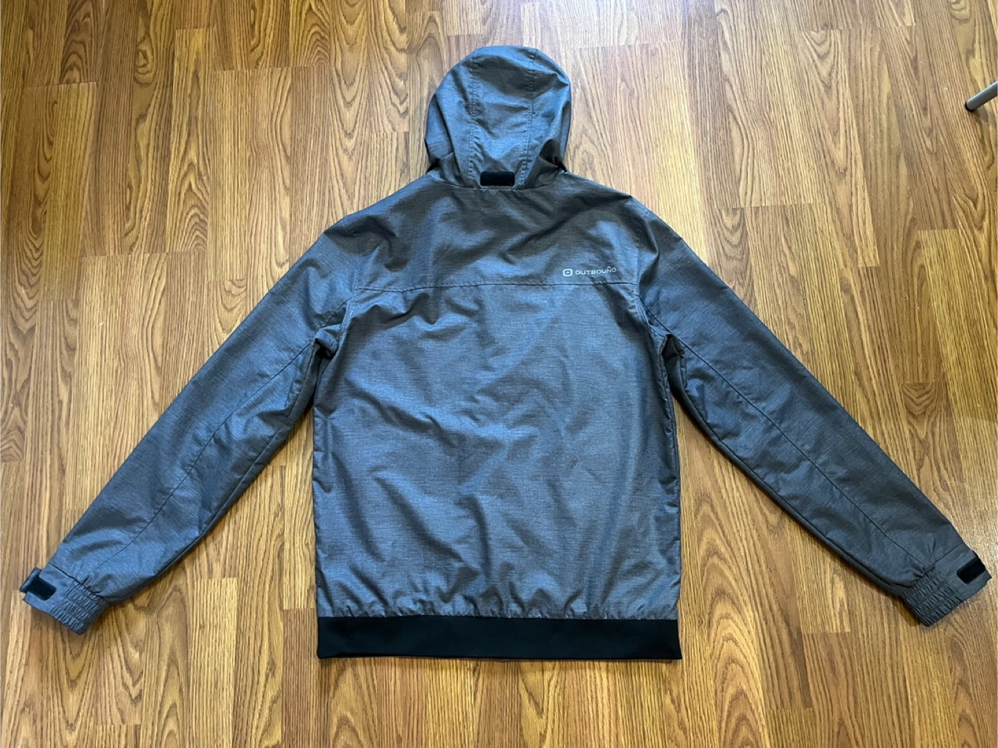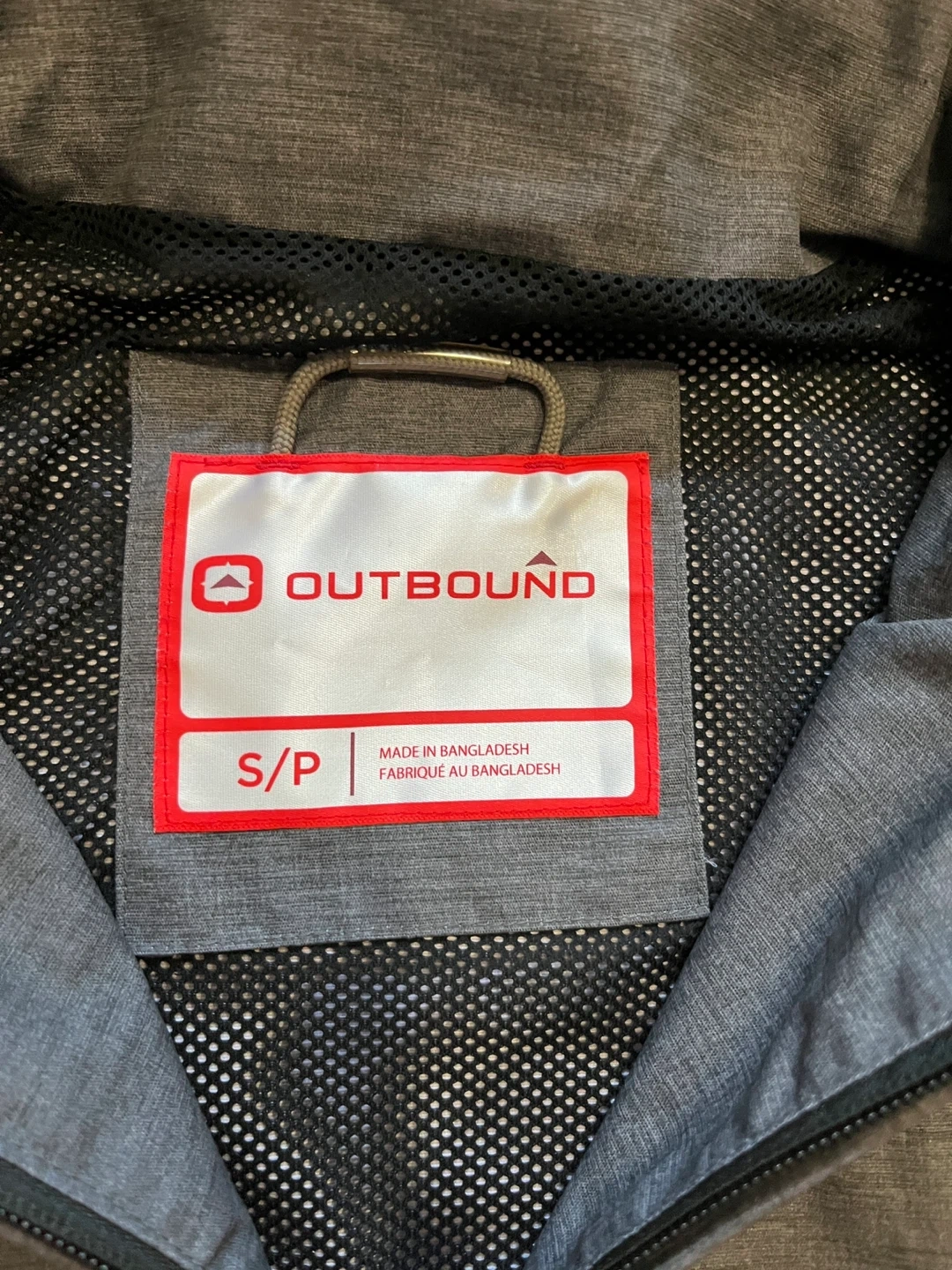 Outbound men’s lightweight ‘Larry’ hooded jacket, size small. Breathable, water-resistant nylon shell with mesh lining. Zip closure, adjustable cuffs, ribbed waistband, and roll-away hood. Excellent condition with light white streaks on inner upper sleeves. Smoke-free home. Flat measurements: • Pit to pit: 22” • Length: 27.5” • Hip: 19.5” • Sleeve: 27.5” Pickup in Oshawa - Harmony/Rossland area